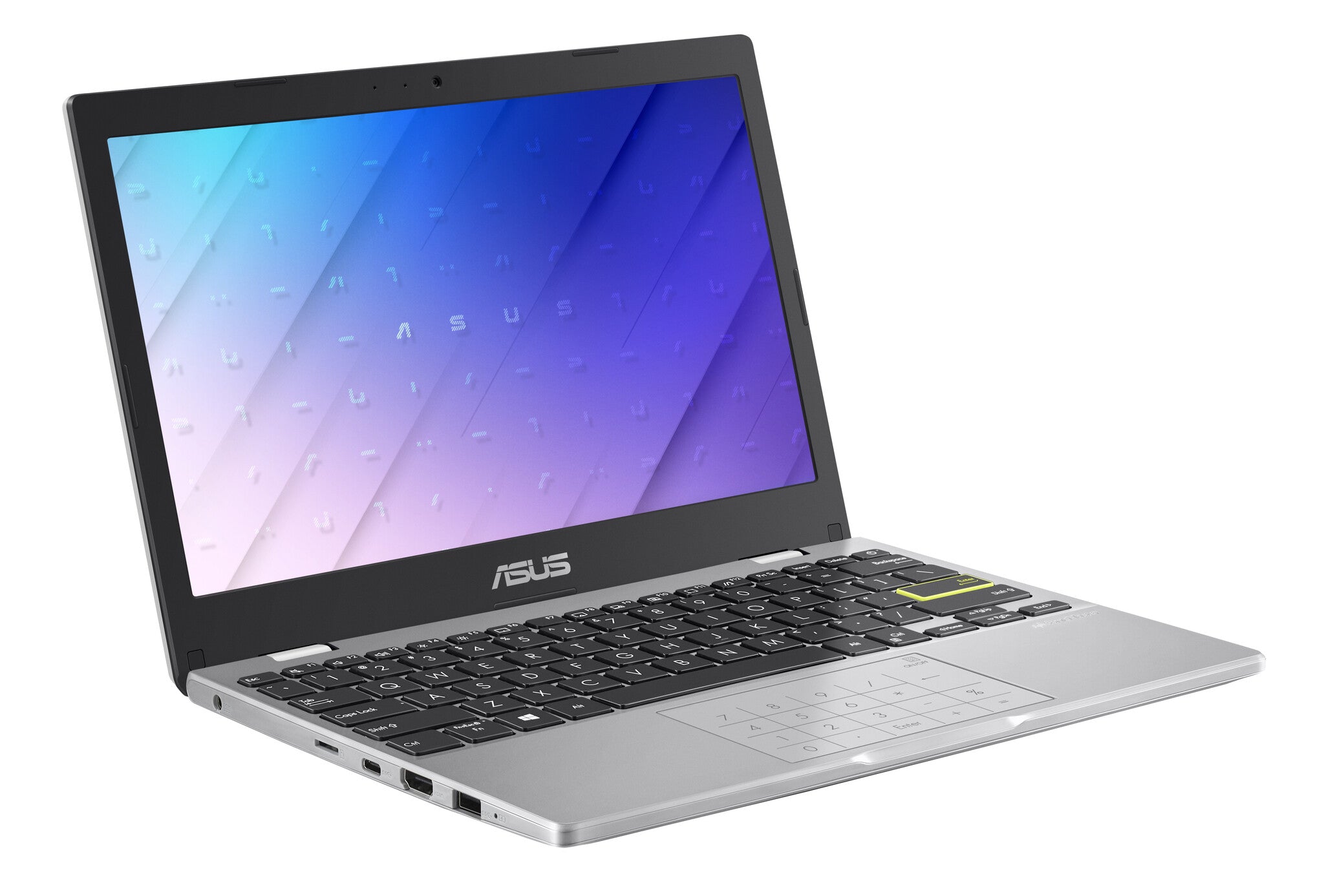 ASUS E210 has a youthful vibe that sets it apart. The lid is detailed with modern slashes that are accompanied by a unique motif made up of a deconstructed ASUS badge. The bold look continues inside, where a bright yellow Enter key takes center stage. It’s something never seen before in laptop design.