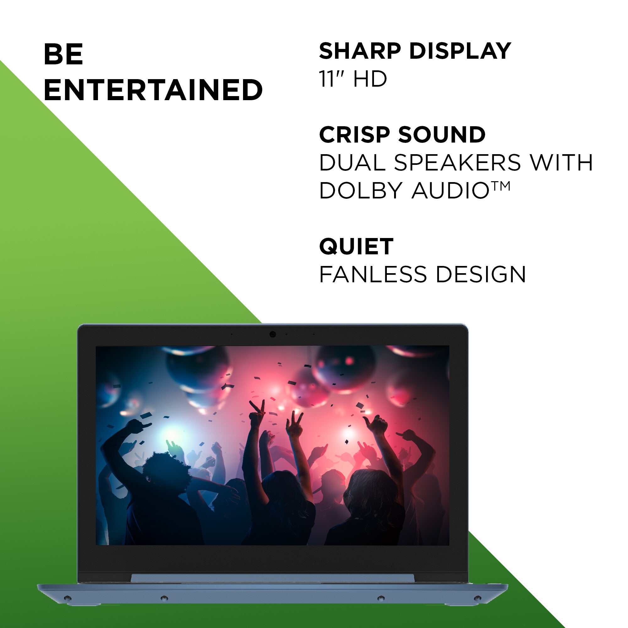 Check emails, post on social media, and stream a couple episodes of your favorite show anywhere you want with the light and compact IdeaPad 1 (11", Intel). This laptop was designed to provide you reliable daily computing on-the-go with up to Intel® Pentium® processors and a long-lasting battery. You’ll also enjoy robust media with its HD screen and Dolby Audio™ dual stereo speakers.