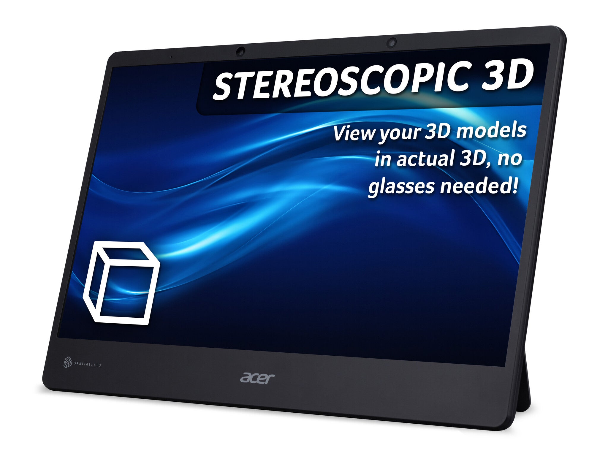 Acer SpatialLabs provides intuitive interaction and an immersive feel thanks to advanced opti[1]cal, display and real-time rendering solutions. It is the perfect combination of eye-tracking solu[1]tion, stereoscopic 3D display, real-time rende[1]ring, AI technologies, and the latest shaders and drivers.