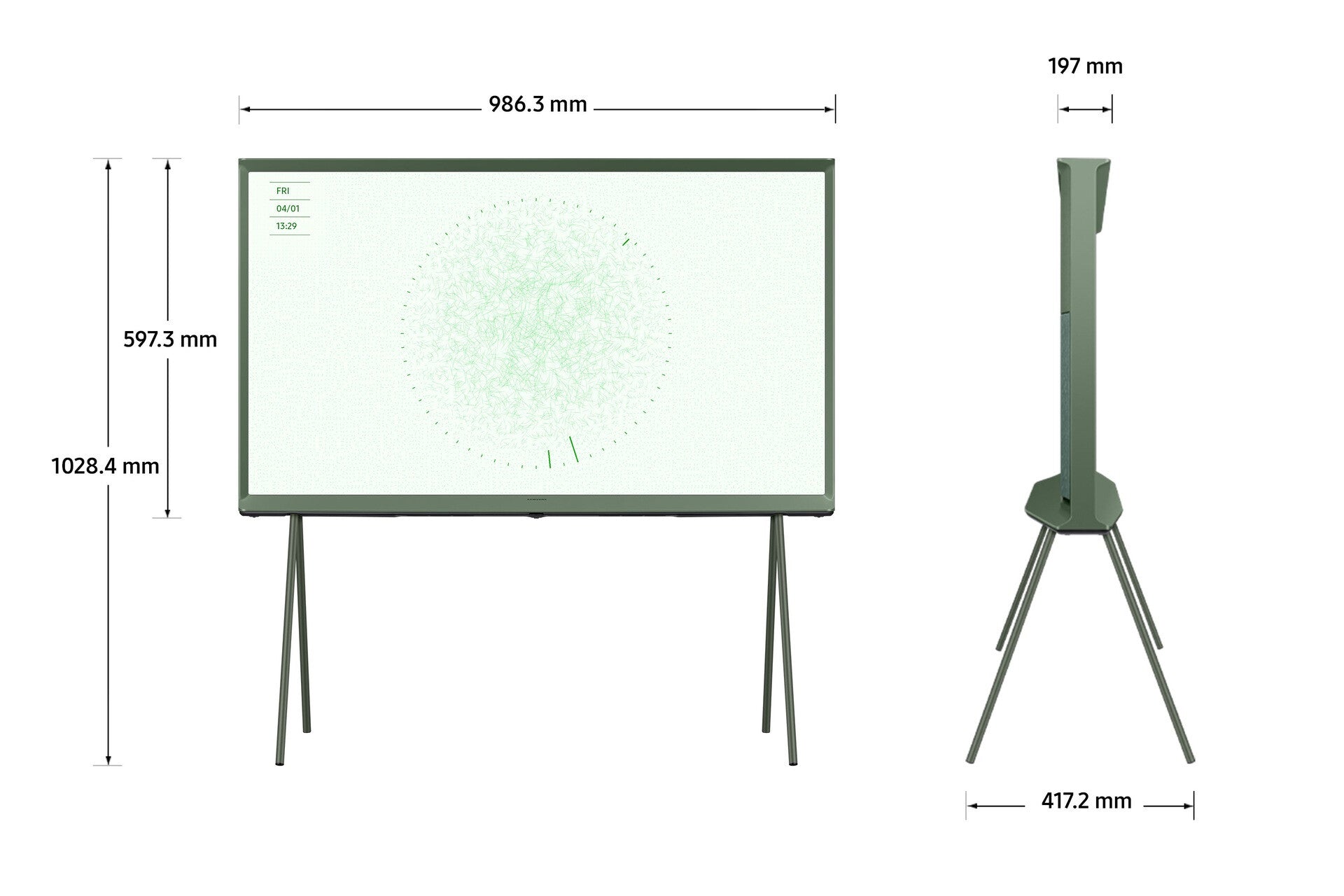 | Width (with stand) | 986.3 mm |
