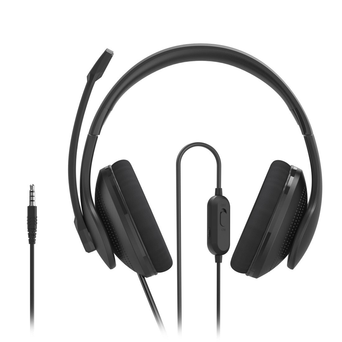 - PC office headset with mobile microphone arm and 1 x 3.5 mm jack connection plus Y-adapter