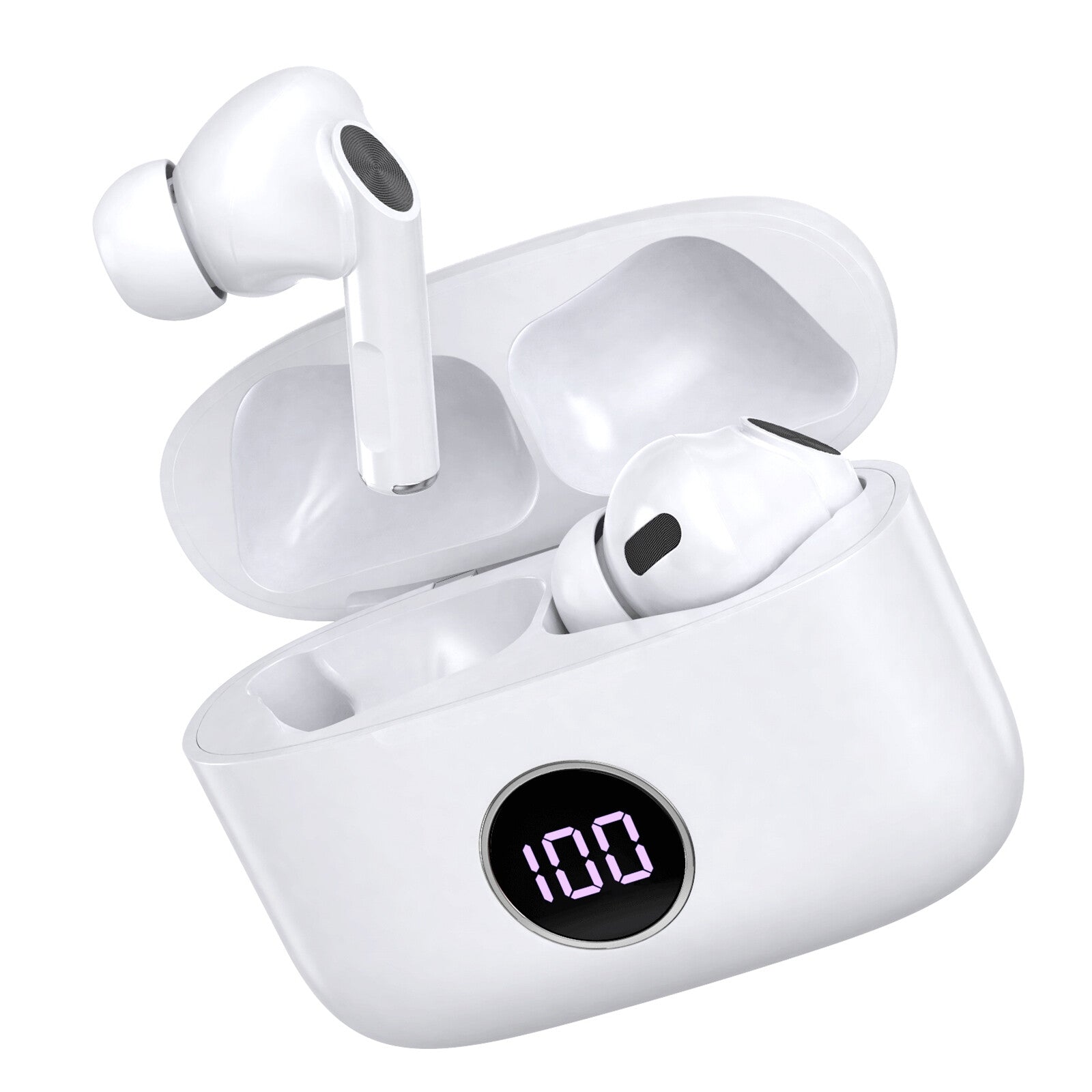 PREVO M10 Active Noise Cancelling TWS Earbuds, Bluetooth 5.3, Automatic Pairing, Touch Control Feature with Digital LED Display Wireless Charging Case, Android, IOS and Windows Compatible, White