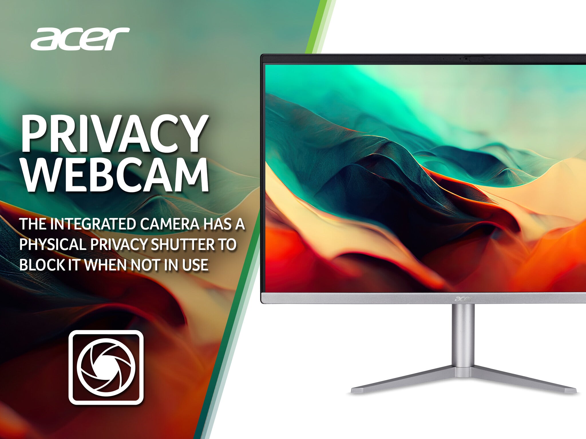 The Aspire C24-1300 All-in-One desktop from Acer looks stunning from every angle and features all the tech you need to breeze through your day-to-day tasks.