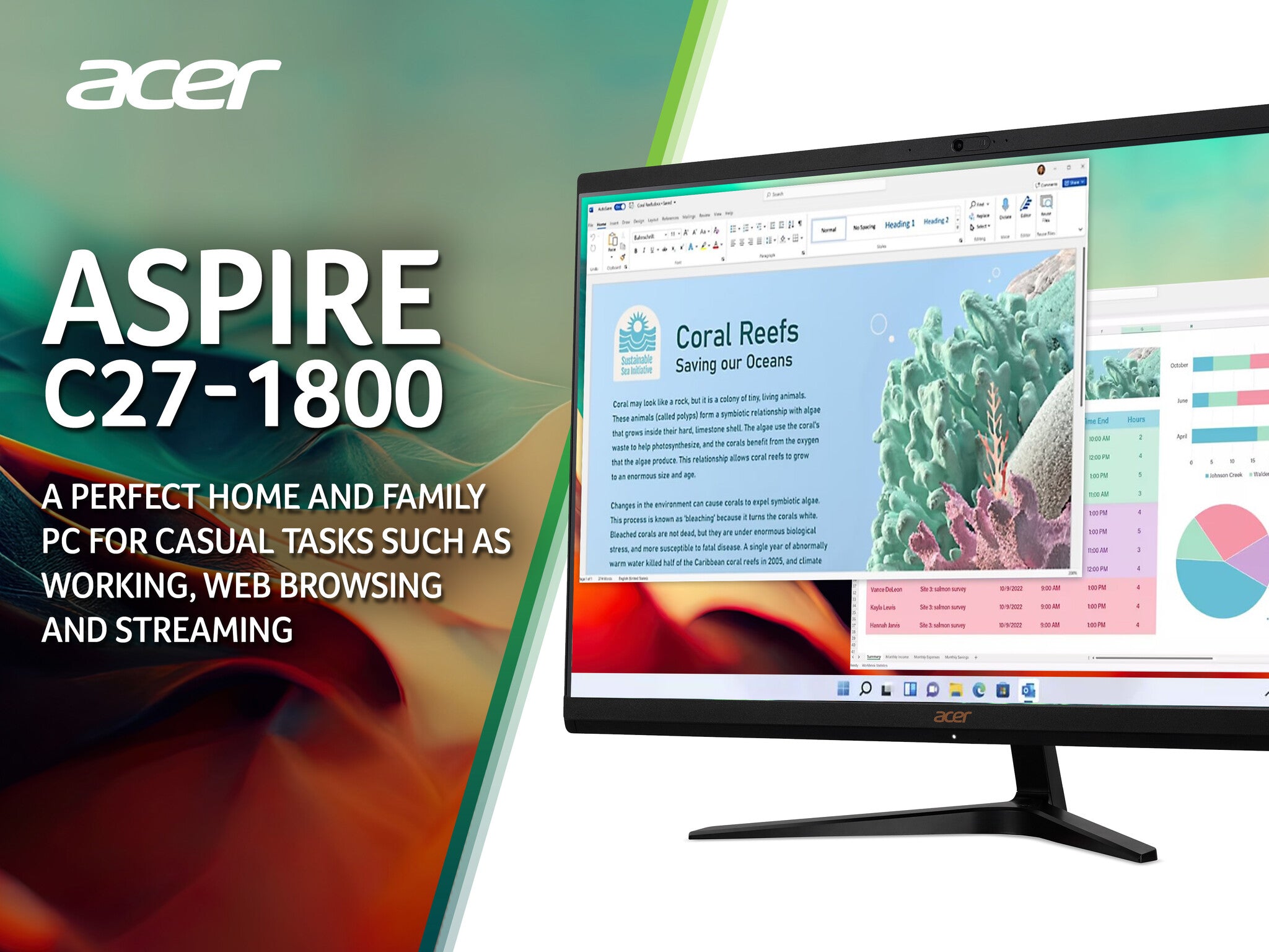 Acer Aspire C27-1800 All-in-One Desktop - Intel Core i5-1335U, 8GB, 1TB SSD, Integrated Graphics, 27" Full HD, Windows 11, Black