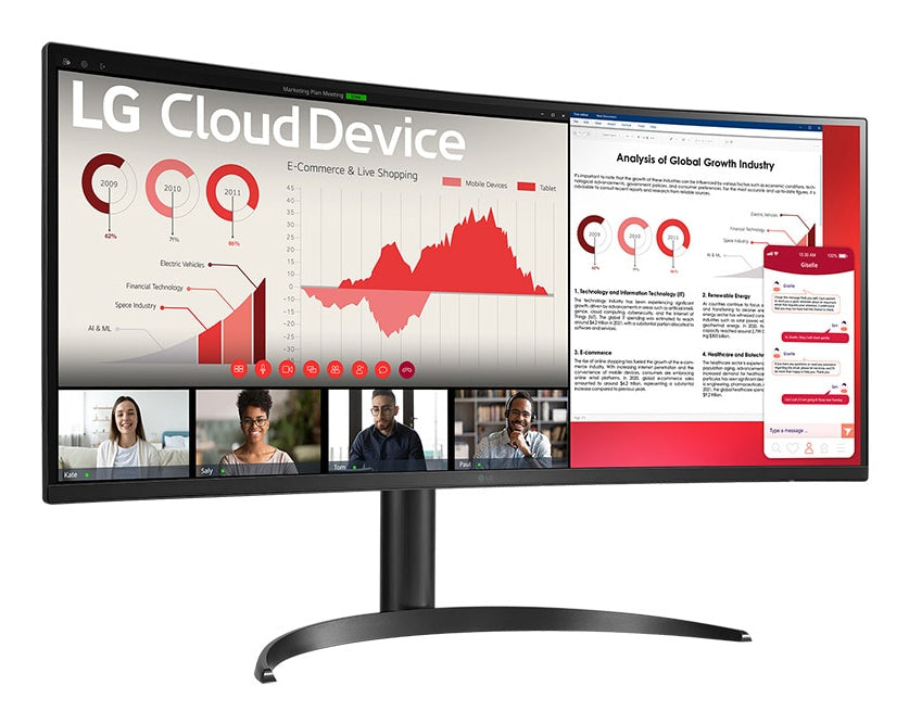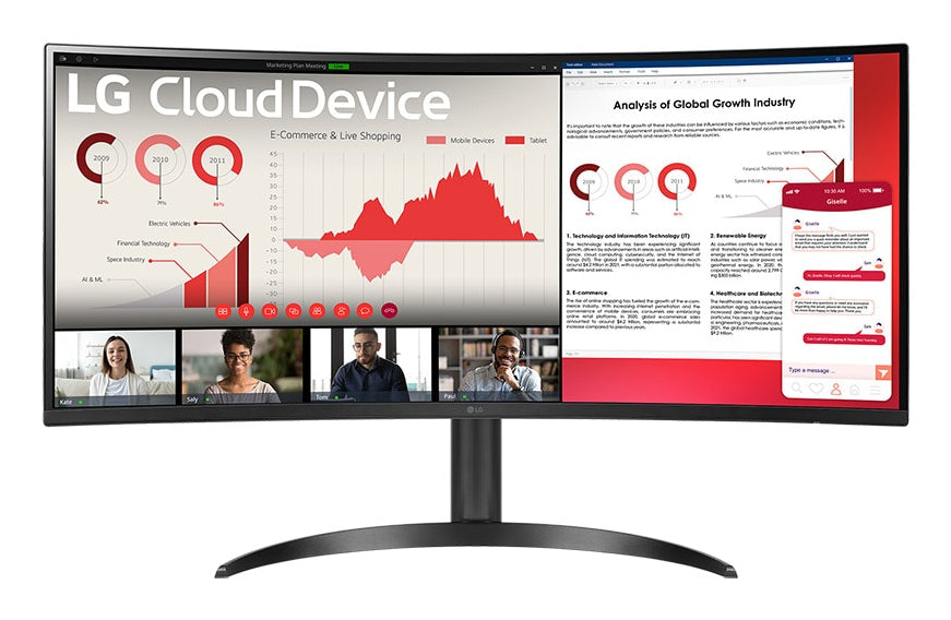 The WQHD screen (3440x1440 resolution, 21:9 aspect ratio) displays various programs at once that make work easy and helps to increase work productivity.