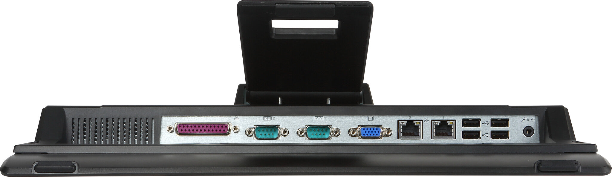 - Dual COM ports and one printer port for a barcode scanner, credit card reader, printer, cash machine, etc