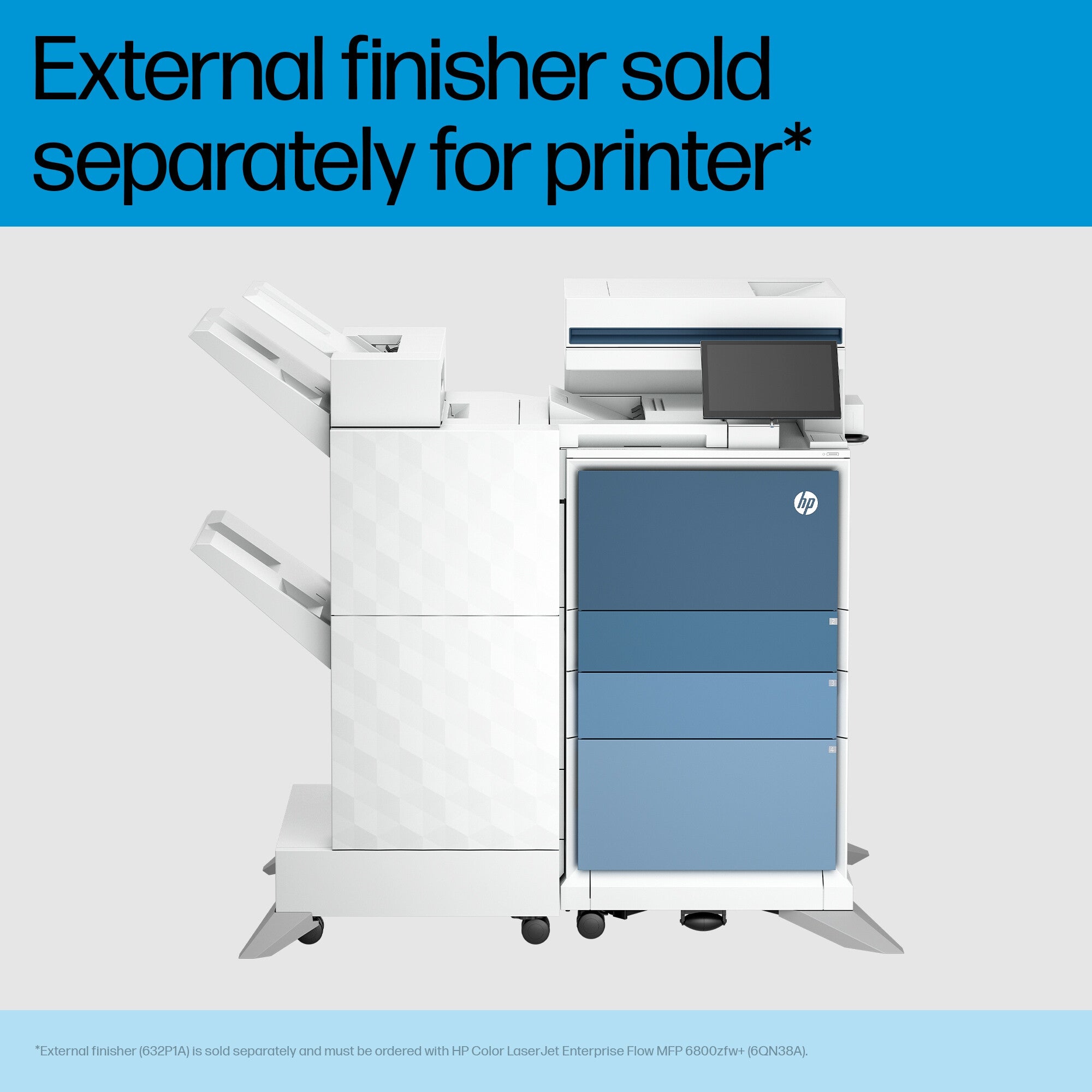 The most advanced and customizable HP A4 LaserJet, an advanced copier with workflow solutions to modernize workforce collaboration. Transform your workflows with advanced capabilities in a compact footprint. Customizable configurations from print speeds to color panels[10] help to meet the needs of busy workgroups. All while protecting your business against evolving security threats. Please note: floor-standing finisher (632P1A) must be ordered together with the printer.
