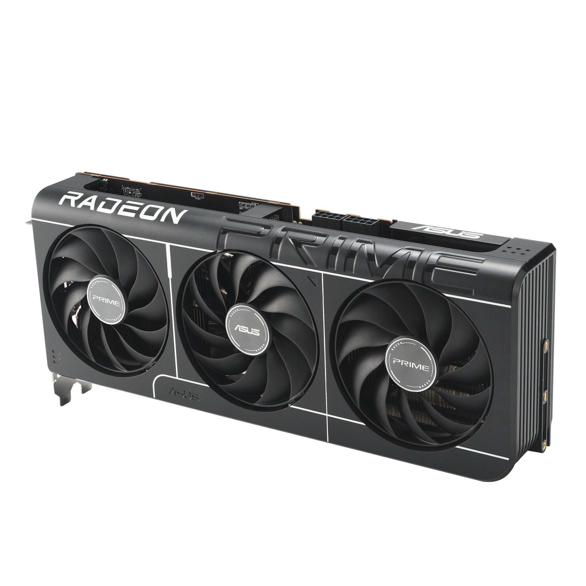 Experience Primal performance with the Prime Radeon™ RX 9070 graphics card featuring a compact 2.5-slot design for expansive compatibility, enhanced by a phase-change GPU thermal pad and a triple-fan setup for supreme cooling.