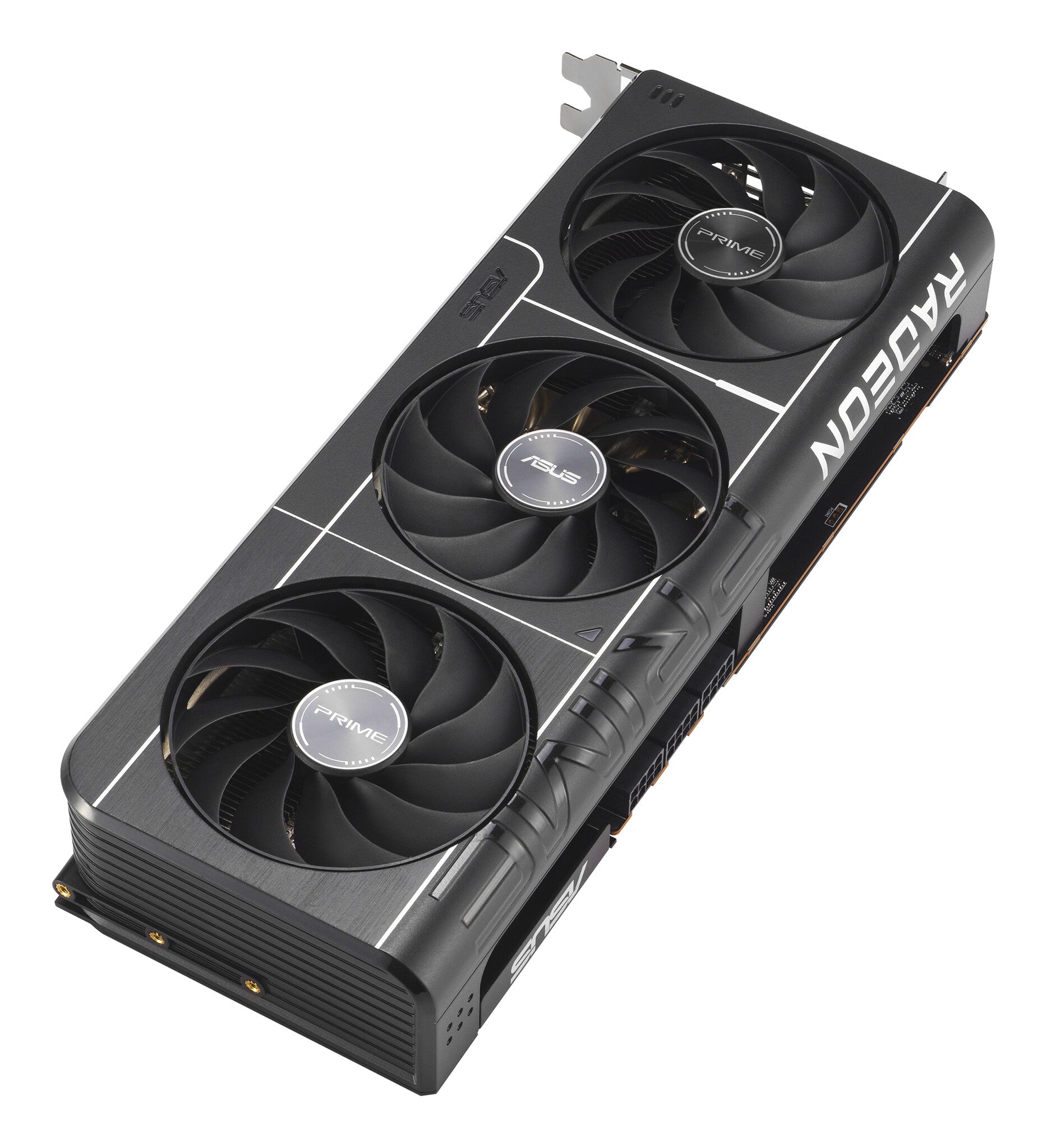 The Prime Radeon™ RX 9070 XT features a 2.5 slot design with a carefully arranged layout for the shroud, heatsink and heat pipes to let the three Axial-tech fans leverage chassis side-panel ventilation and deliver optimal thermal performance.