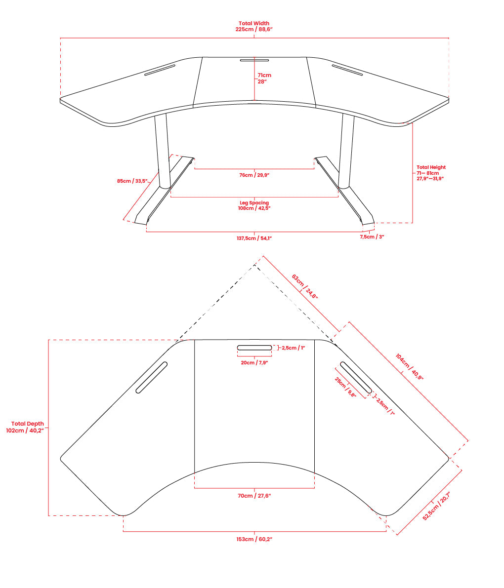 Desk Height 71cm - 81cm / 27.9” – 31.9”