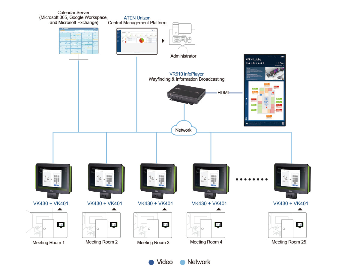 With the VR610 integrated into the ATEN Room Booking System, reserving a room is just one tap away. Use intuitive color coding to find available rooms via the list or map view, then tap the touchscreen to book instantly for immediate use.