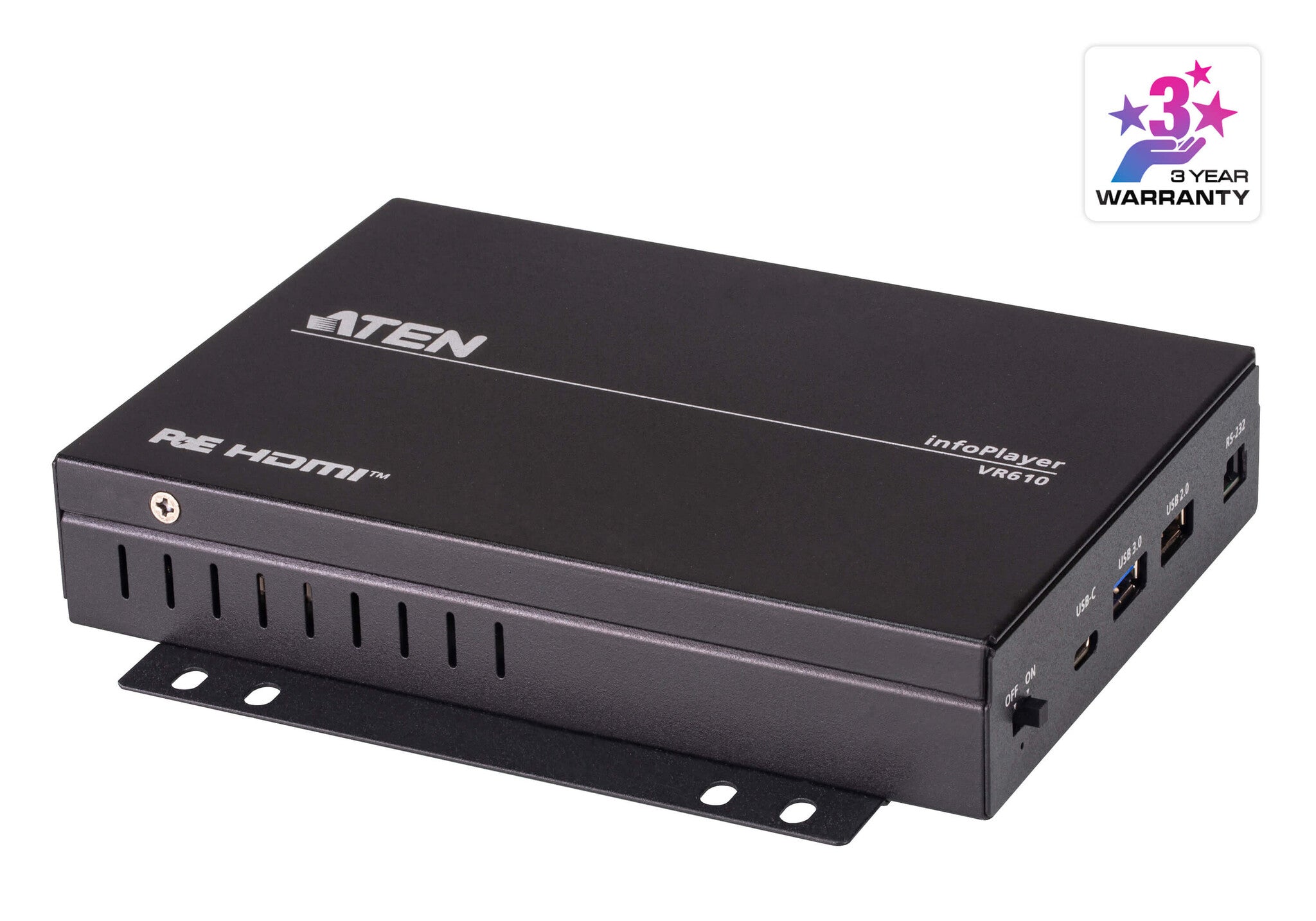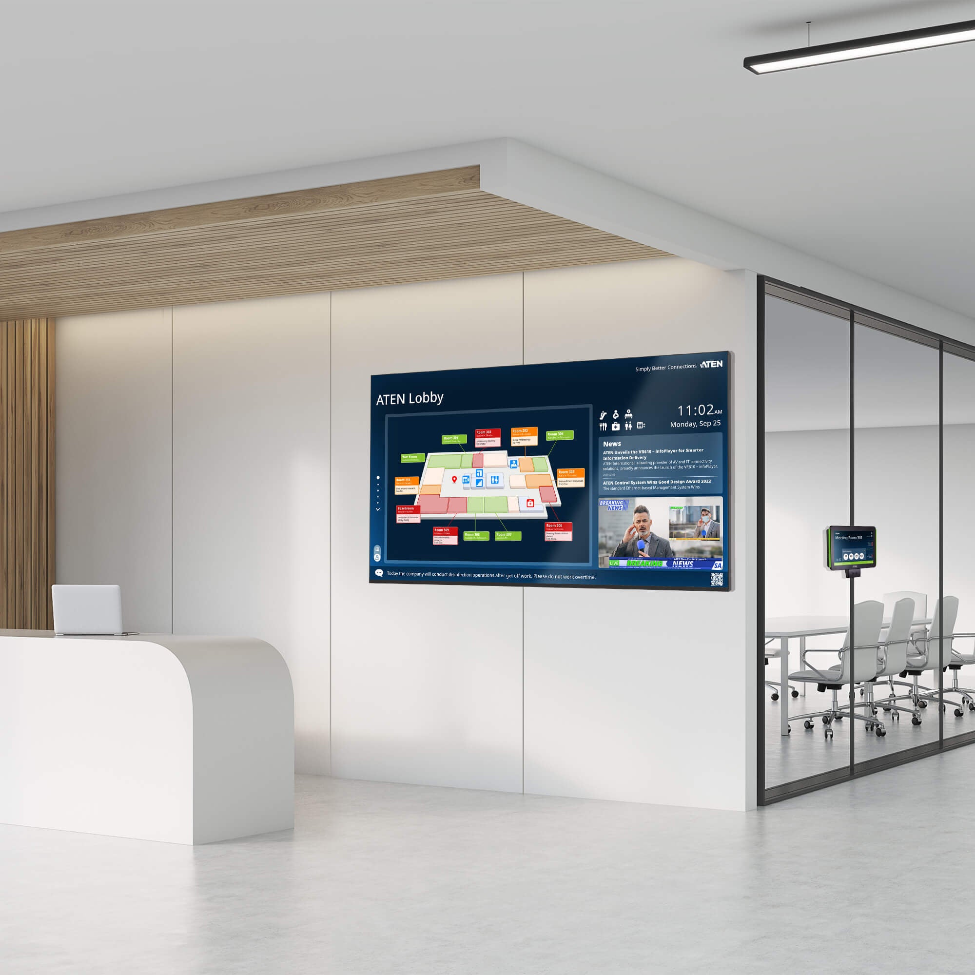 Built with dual CPUs, the VR610 offers plug-n-play compatibility with any HDMI-enabled display to provide real-time room status updates and dynamic 4K multimedia content, seamlessly syncing with room booking system panels. It can be powered directly through the network connection (Power over Ethernet), while supporting fast USB 3.0 data transmission, intuitive touchscreen interaction, and up-to-date multimedia content.