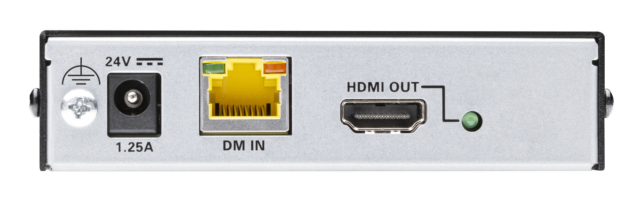Interoperability with a DM® Essentials transmitter or DMPS Essentials switcher to provide point-to-point extension of HDMI®, RS-232, and IR signals over a CATx cable. Supports 4K60 4:4:4 video, HDR10+, and HDCP 2.3.