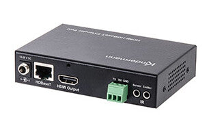Accepts an HDBaseT compatible signal via CAT-6/7 cable for output as HDMI-,