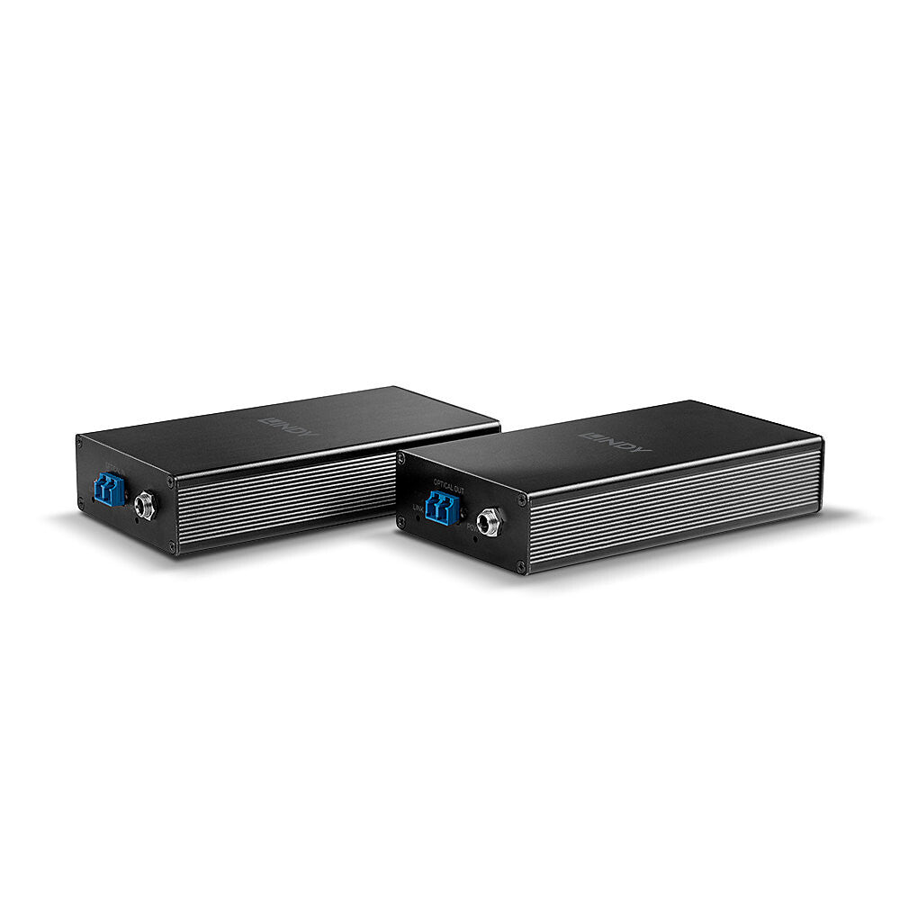 The Lindy 1200m Fibre Optic DisplayPort 1.2 Extender is the professional solution for extending DP 1.2 signals over increased distances, not possible with traditional copper-based systems, using a single standard LC duplex singlemode (9/125µm) fibre optic cable.