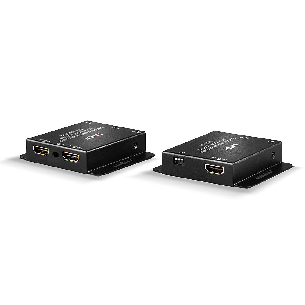 The Lindy 50m HDMI & IR Cat.6 Extender is a simple to use plug and play solution which lets the user extend HDMI signals up to 50m using a single low cost Cat.6 U/UTP cable (not included). For added convenience IR signals (20-60 kHz) can also be extended using the supplied IR Receiver and Emitter cables.