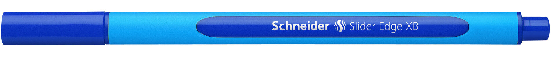 Ballpoint pen with Viscoglide® technology for extraordinarily smooth and gliding writing. Writing colour blue. Extra Braod line width (XB). The ink dries quickly - even on smooth paper - and is smudge proof when highlighting it later on. Ideally suited to drawing and painting projects because the special ink will not run even on absorbent paper. A generously rubberised three-sided barrel is designed for relaxed writing without hand fatigue. It does not roll on the desk and its slim shape fits perfectly into school children's pencil cases or into desk pen drawers. The cap fits neatly on either end of pen. The wear-resistant stainless steel tip guarantees that the large ink supply can be fully used and does not smear. The Slider Edge is produced CO2 neutral.