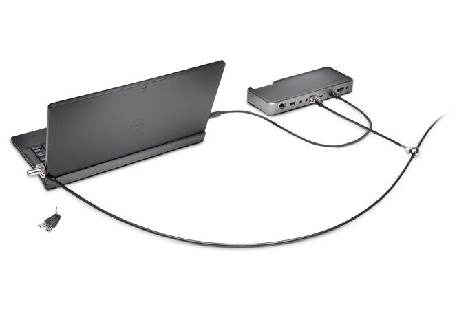 The two lock heads are designed for laptops and other devices, while using the same key so you can quickly secure a laptop as well as a monitor, docking station or hard drive.