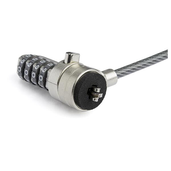 - ADDITIONAL LOCK HEAD: 6" (15cm) Anti-theft cut-resistant vinyl-coated steel security cable (4.4mm thick); combination lock w/ 4-digit resettable code; compatible w/ Kensington Style Slots (K-Slots)