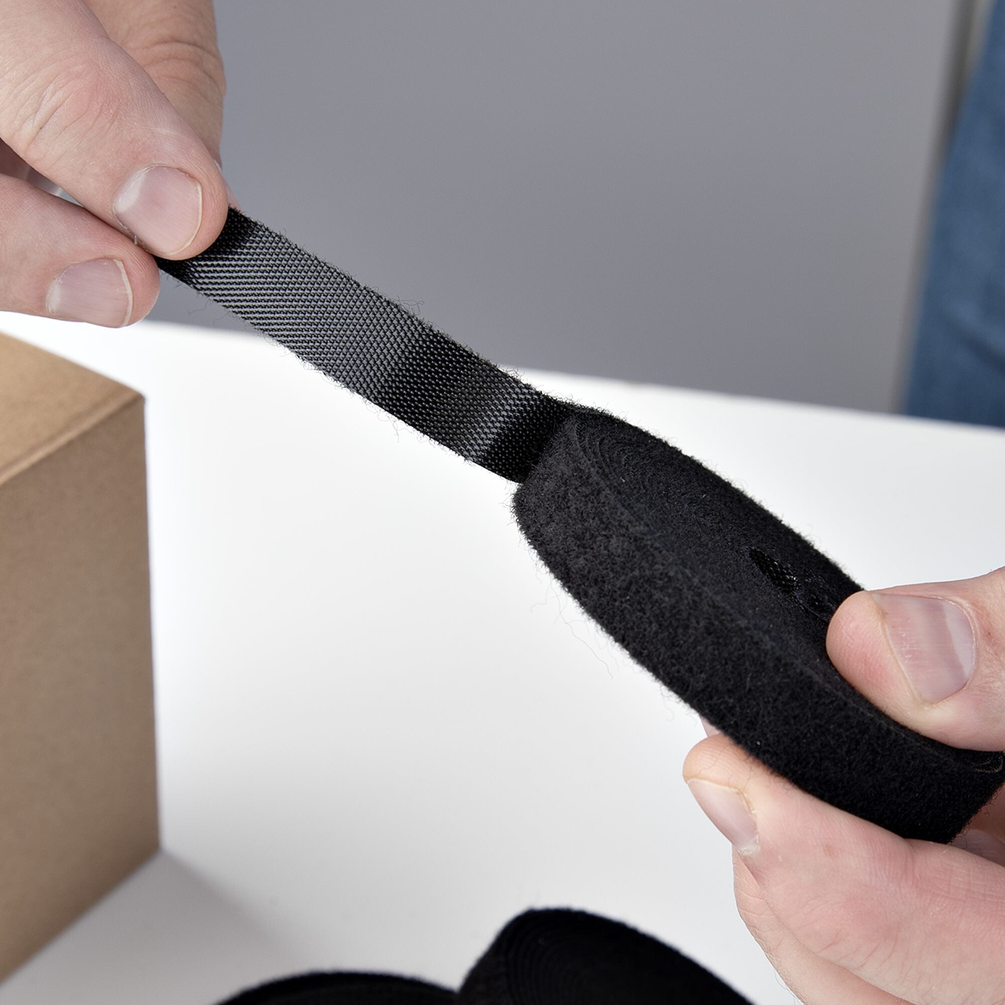 It uses a hook-and-loop fastening method to ensure a sturdy grip that's easy to apply. With the hook mechanism on one side of the tape and a loop mechanism on the other, you can easily wrap it around your cable bundle, and fasten the cable tie by draping it over itself.