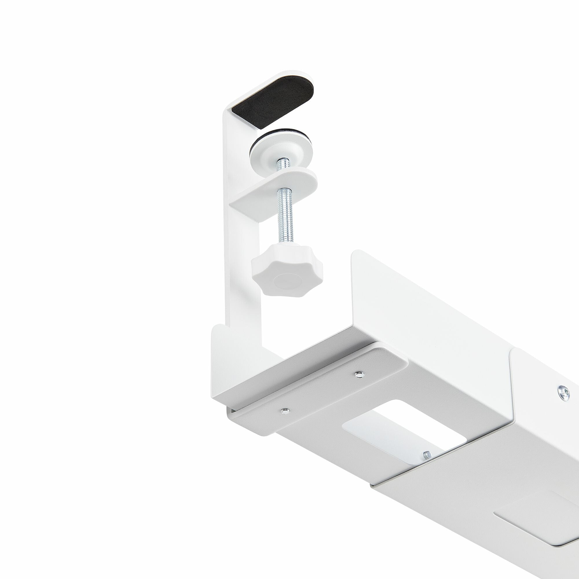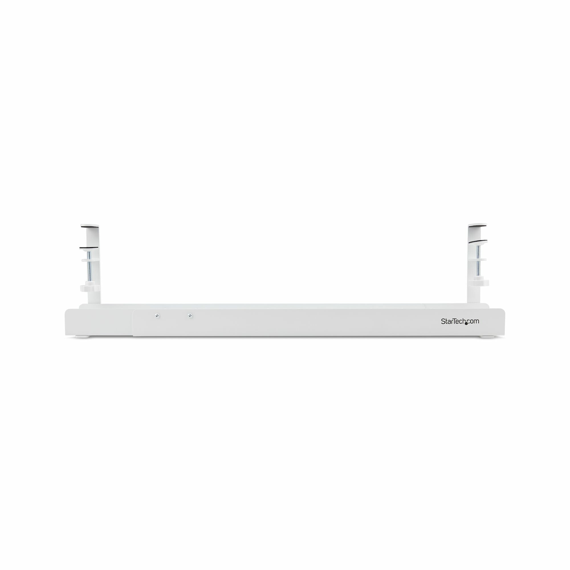 StarTech.com Under Desk Cable Management Tray, Length Adjustable Cable Organizer, Clamp-On Installation, No Drilling Required, Power Bar Holder, White