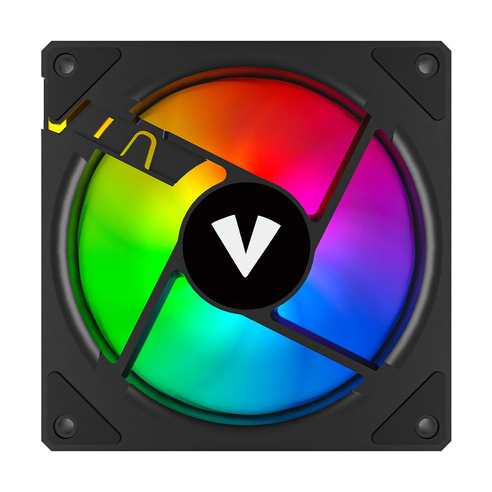 The INFINITY02RB-BLK boasts a mesmerising lighting system that will captivate your senses. The outer ring features vibrant RGB lighting, while the centre and sides showcase an infinite mirror effect that creates a stunning kaleidoscope of colours. Synchronise the lighting with your motherboard for a truly immersive experience.