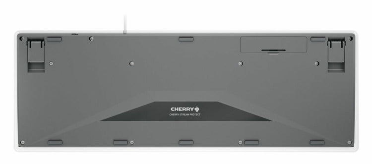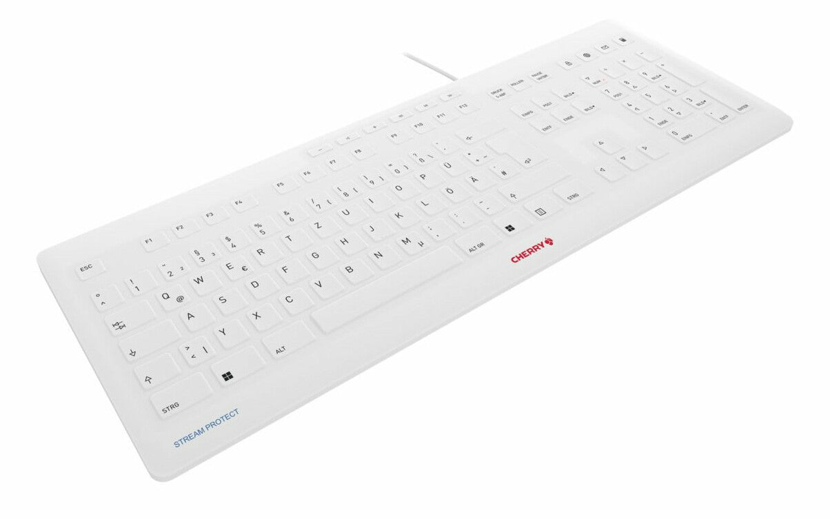 The STREAM PROTECT KEYBOARD follows the design, elegance and sleekness of the CHERRY STREAM product line with the same slim design, high torsional rigidity and stability. Rubber pads and fold-out feet provide the usual firm footing. Sturdy scissor technology and the highly developed haptics of the key membrane ensure the legendary typing comfort of the CHERRY STREAM keyboards.