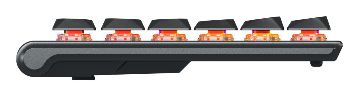 The mechanical gaming keyboard owes its low profile to the MX LOW PROFILE 2.0 switches. Despite its slim design, it has a robust aluminium housing that makes it extremely durable and stable. The slim shape also makes the low-profile mechanical keyboard comfortable to use during longer gaming sessions.