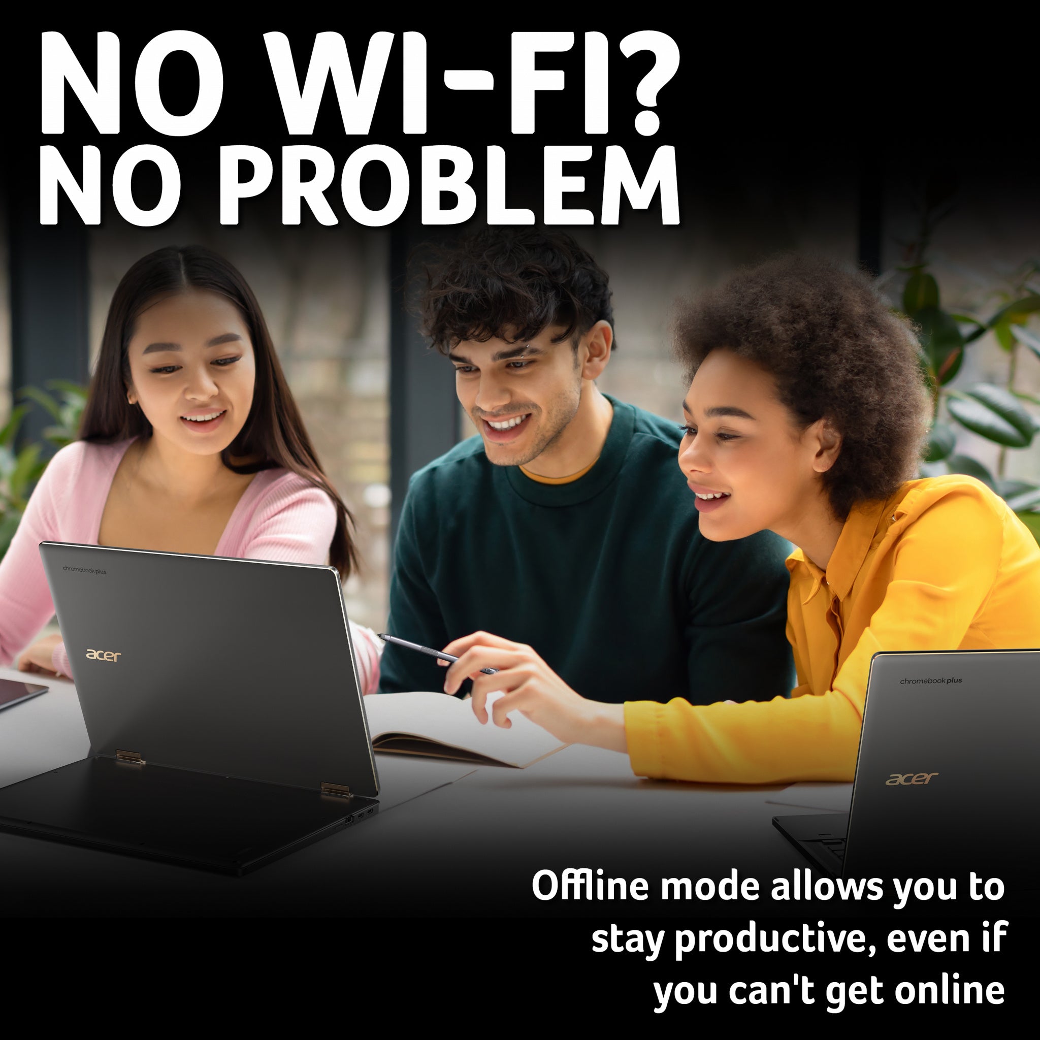 No Wi-Fi? No worries. With double the storage2, File sync on your Chromebook Plus keeps your Google Docs, Sheets, and Slides always accessible, whether online or offline3, so you can create wherever inspiration strikes.