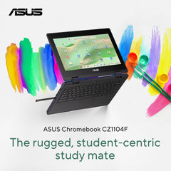 ASUS Chromebook CZ11 Flip stands out as a durable and valuable laptop tailored for K-12 students, with a portable and durable design that guarantees enduring value and empowers engaged learning — anywhere. Featuring a 360°-flippable design and an 11.6-inch display with TÜV-certified technology2, the laptop not only enhances the visual experience but also prioritizes eye protection. The laptop boasts up to 17 hours of battery life3 for uninterrupted use throughout an entire day of classes, empowering students to extend their learning beyond traditional limits.