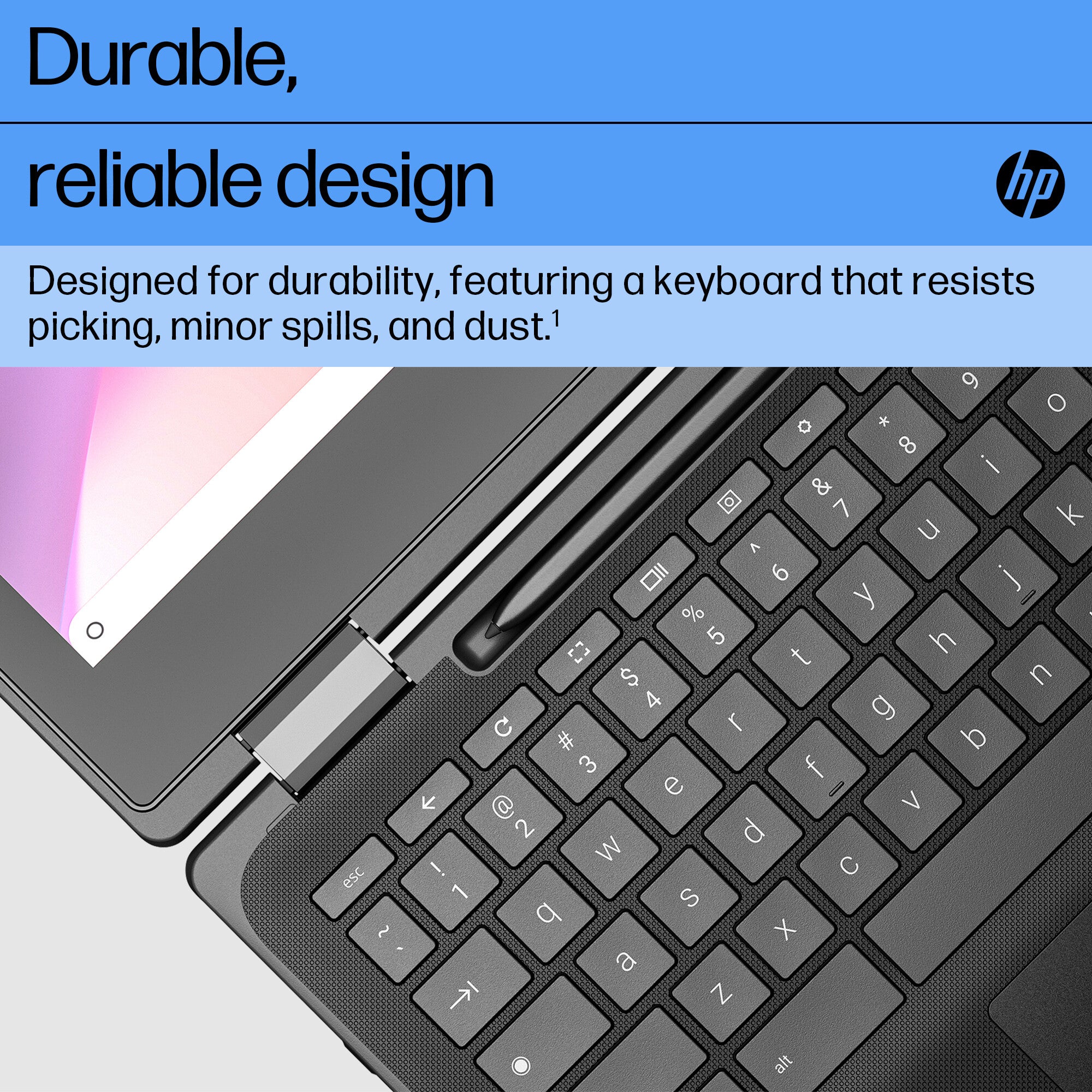The rugged HP Fortis Flip Chromebook provides reliability and performance in a rugged 360-degree design. It features an Intel quad-core processor[8], plenty of memory, and long battery life for productivity throughout the day. The 360-degree hinge allows multiple modes of use, while enhanced durability testing gives you peace of mind.