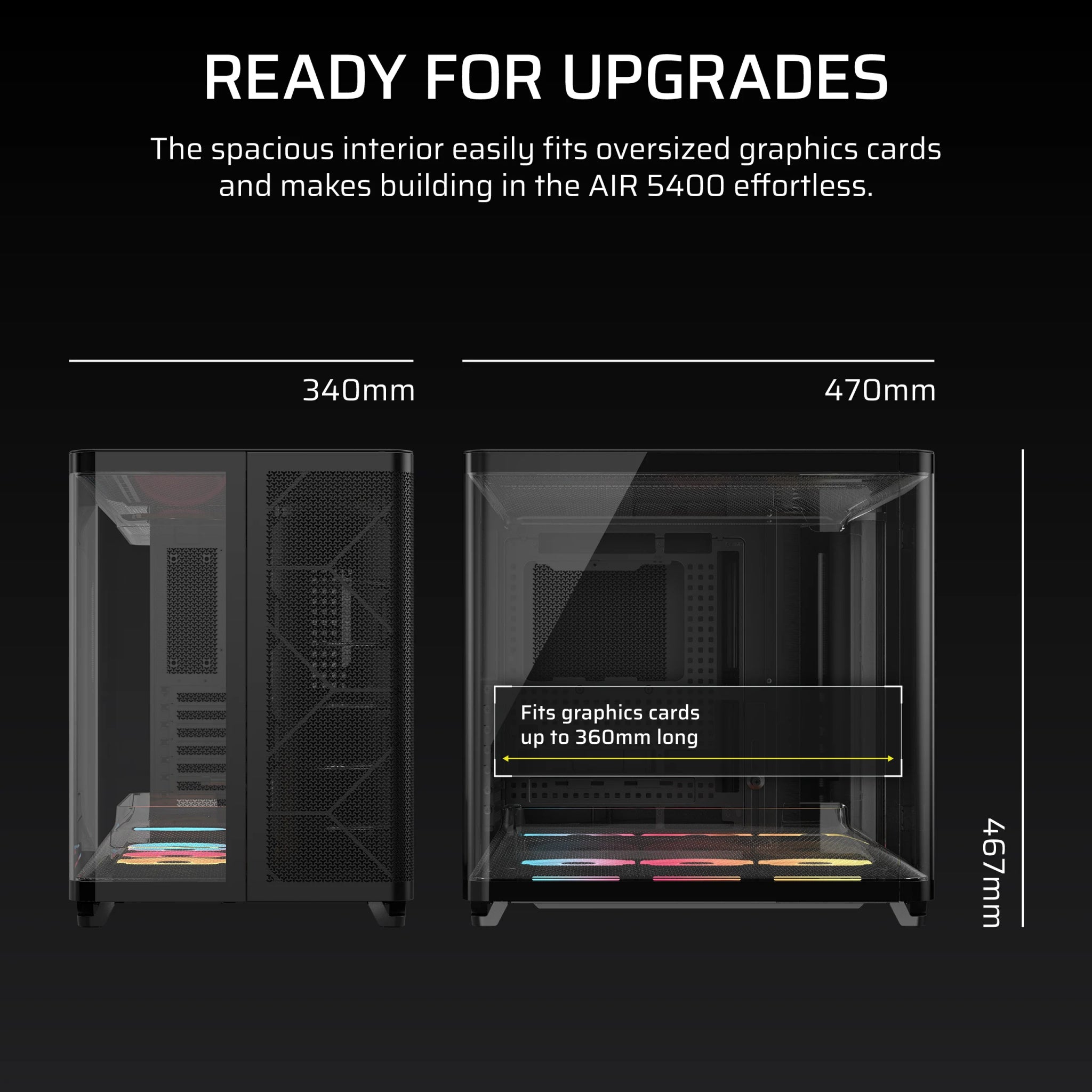 The roomy interior was designed specifically for the most powerful GPUs with plenty of room to breathe and dual airflow ducts to channel cool air through the GPU for maximum performance.