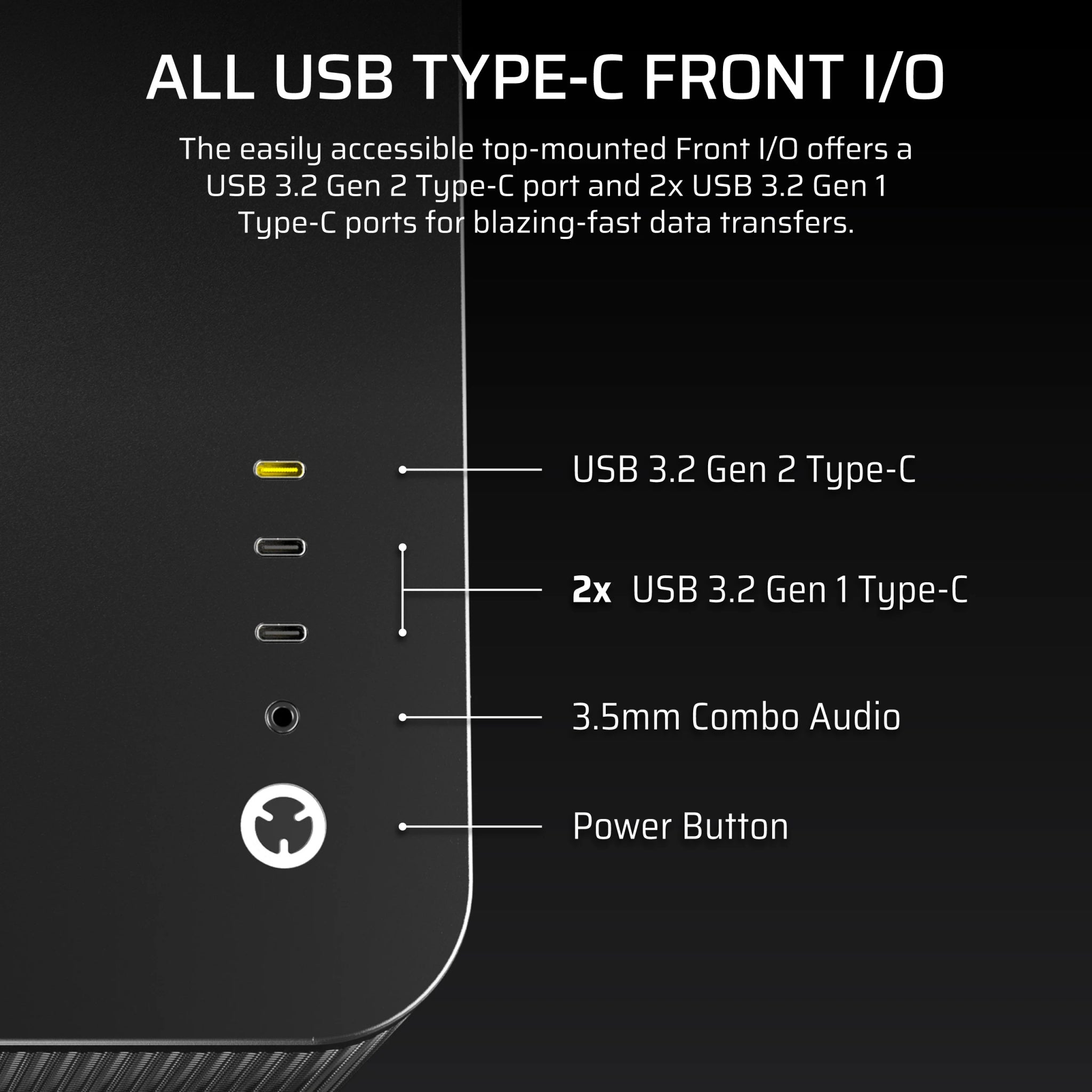 Puts your connections within easy reach, including a USB 3.2 Gen 2 Type-C port, 2x USB 3.2 Gen 1 Type-C ports, and a combination audio/microphone jack.
