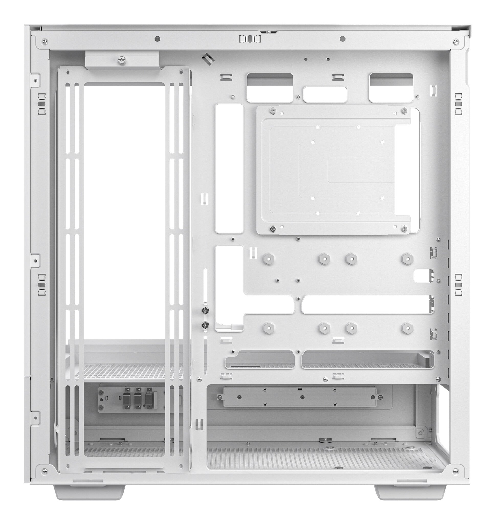 The CH690 DIGITAL WH is designed with beauty and adaptability in mind, featuring a semi-glass panel that offers an expansive view of installed components. For those seeking enhanced performance, the rear of the case supports DIY modifications, allowing users to replace the semi-glass panel with a mesh panel and fan bracket to boost horizontal airflow. Additionally, the integrated light strip slot enables the addition of light strips to create an immersive gaming atmosphere, blending aesthetics with functionality for a truly personalized setup.