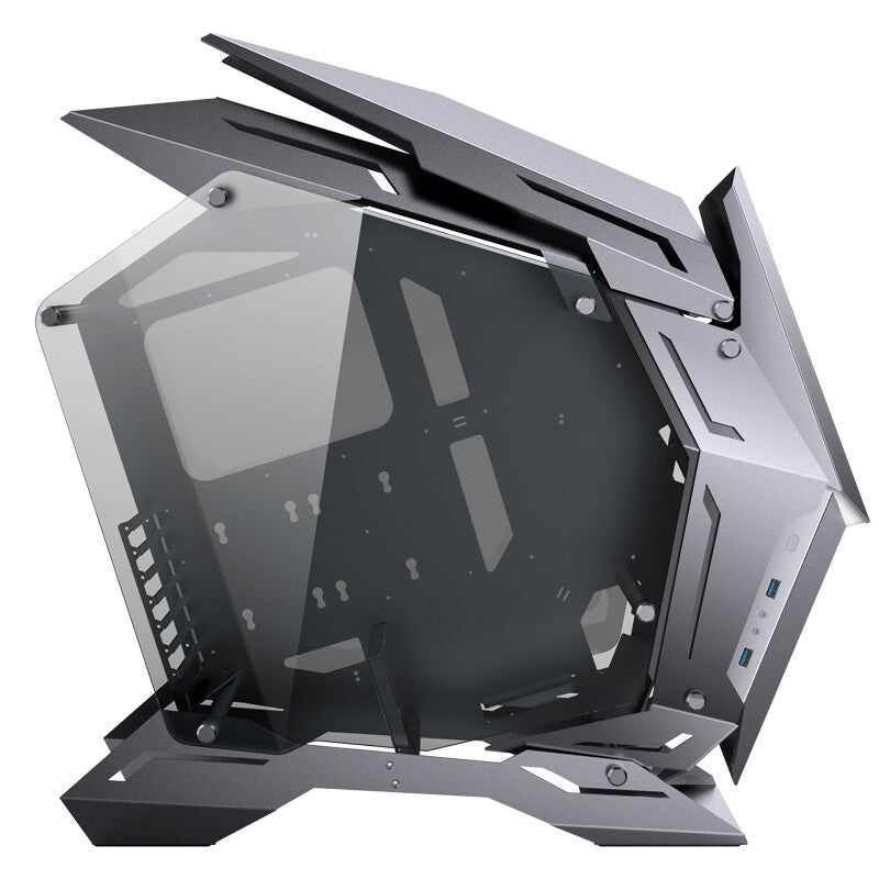 MOD3 is made from the element of aluminum magnesium plate and tempered glass, the aluminum magnesium alloys are made from 2.5+2mm thickness plate with double side sand blasting anodic process, regardless of internal and external parts have strong metal texture. Glasses are made from the element of auto industrial graded tempered glasses, and the thickness is 4mm. The case overall weighed 8kg.
