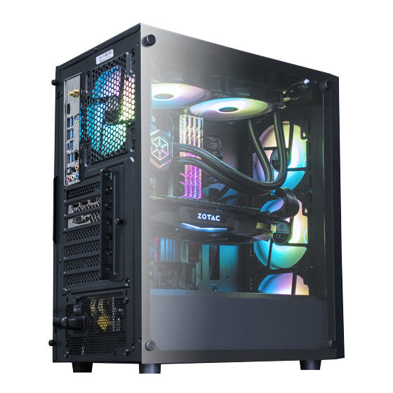 Lightly tinted tempered glass side panel included for displaying your uniquely built system