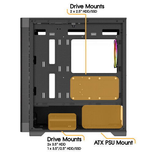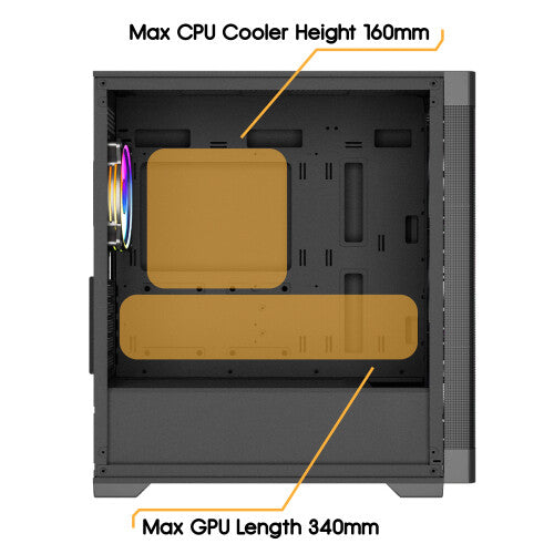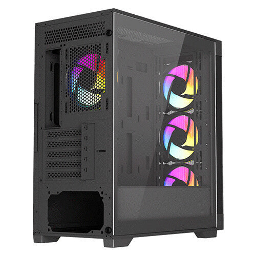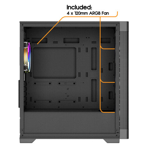 This isn't just a case; it's a statement. Dive into a world where vibrant ARGB lighting dances across a sleek tempered glass panel, showcasing the raw power within.