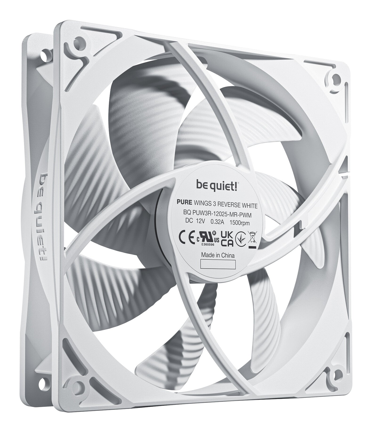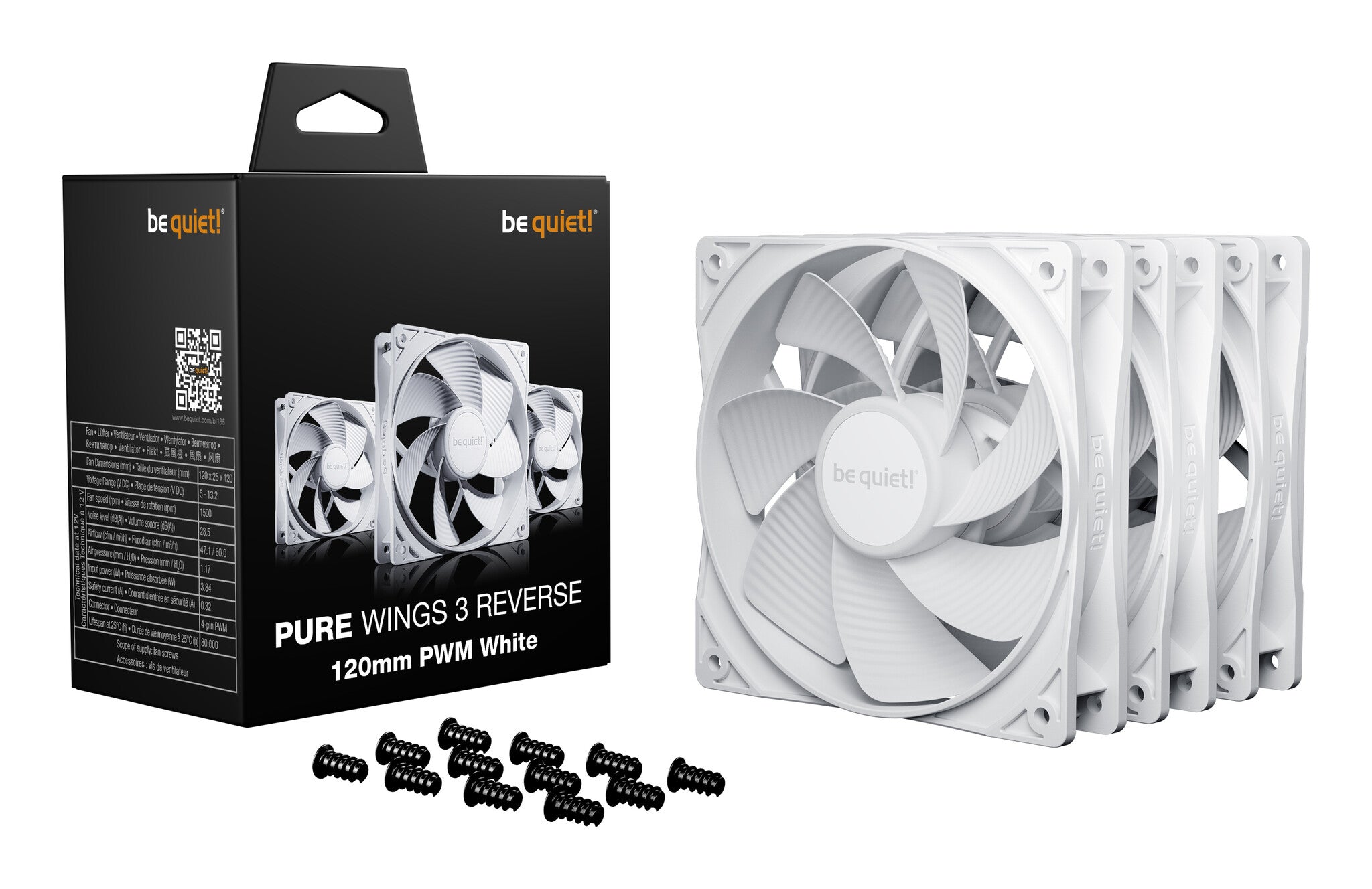 Pure Wings 3 120mm PWM Reverse White Triple Pack is perfect as intake fan for spaces that are in the center of attention, for example as a side or bottom air intake of a fishtank-style PC case. With its reversed fan blades, you always keep the front of these sleek fans in your view.