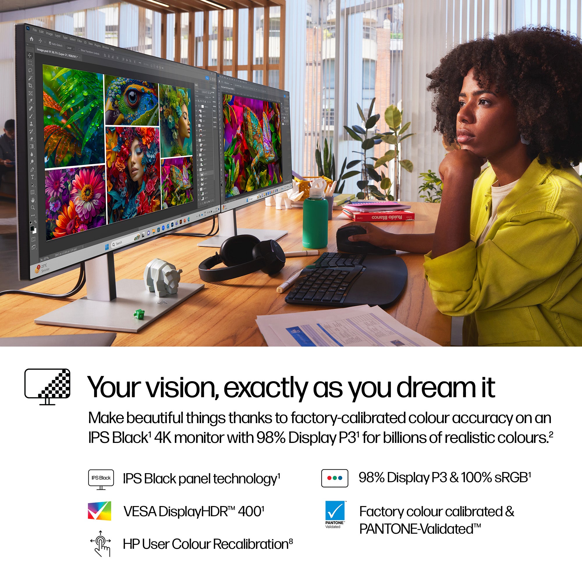 Create awe-inspiring work with true-to-life clarity. The HP 27” 4K Thunderbolt 4 Monitor helps illuminate your ideas in a fully calibrated array of stunning colors. Power through your heftiest multitasking thanks to this high-performance display.