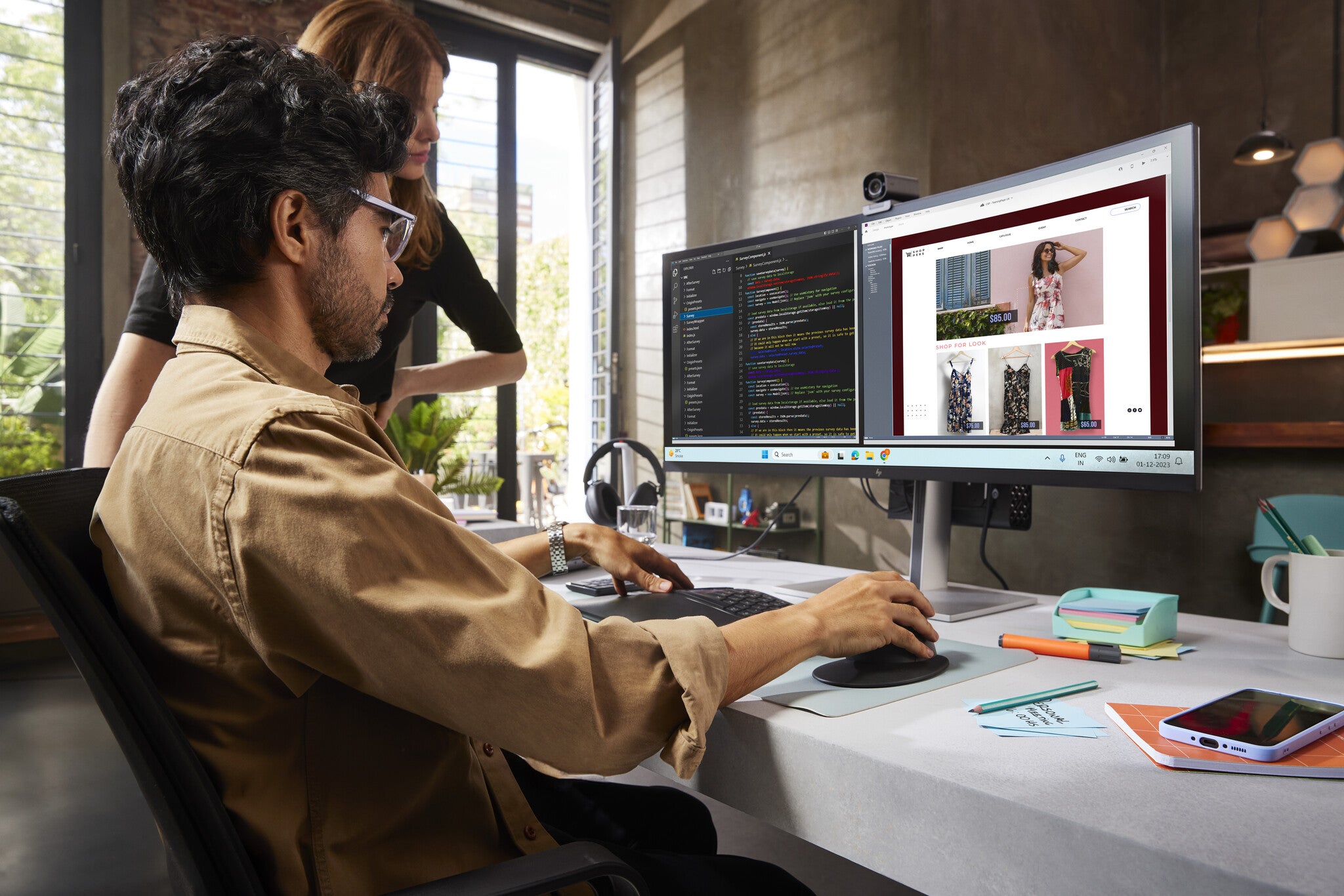 The path to excellence doesn’t cut corners, it curves them. The HP 37.5" WQHD+ Thunderbolt 4 Monitor pushes you above and beyond with dazzling colors on a powerful, ultrawide curved monitor for effortless productivity.