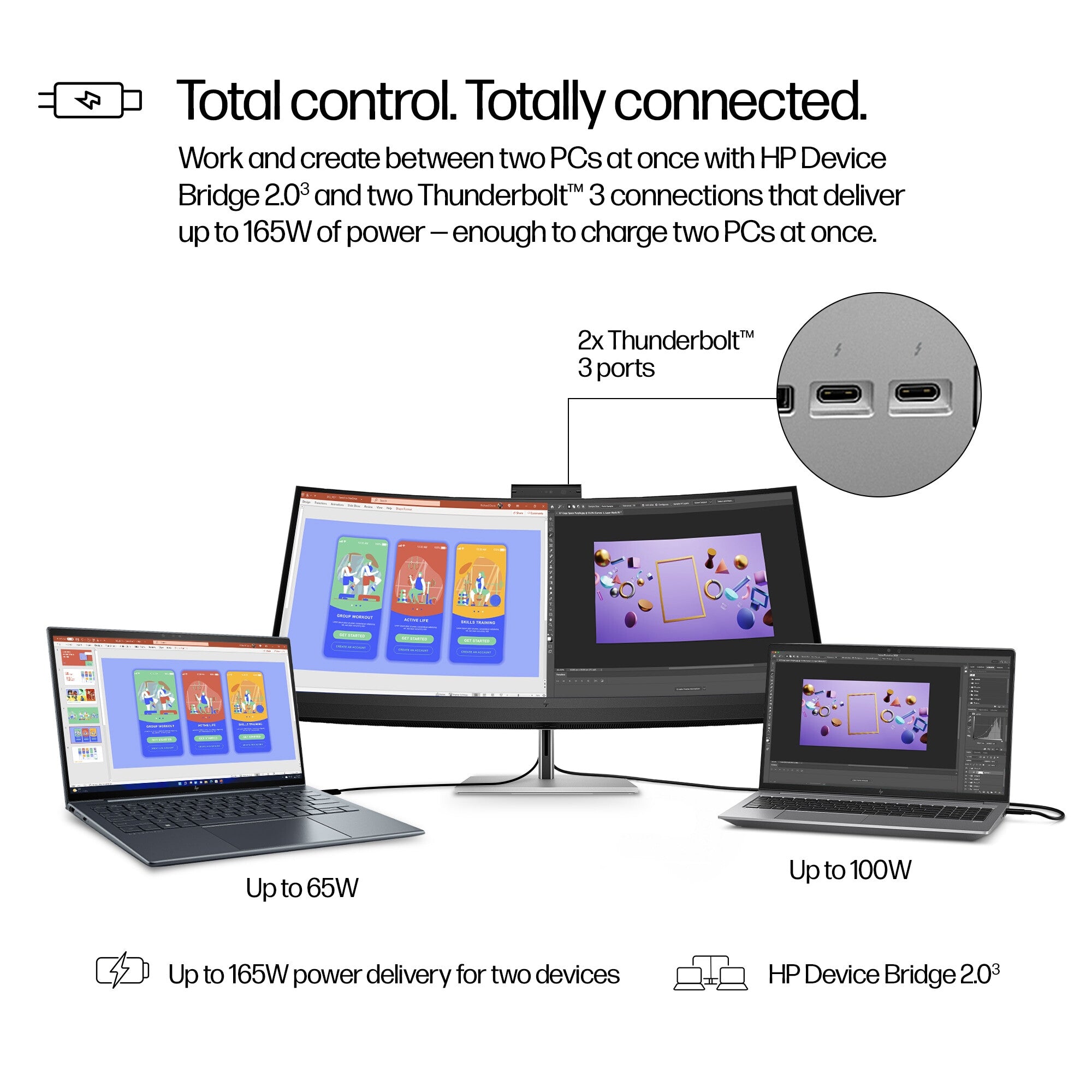 - Work and create between two PCs at once with HP DeviceBridge 2.0[3] and two Thunderbolt™ 3 connections that deliver up to 165W of power—enough to charge most PCs or a MacBook Pro.