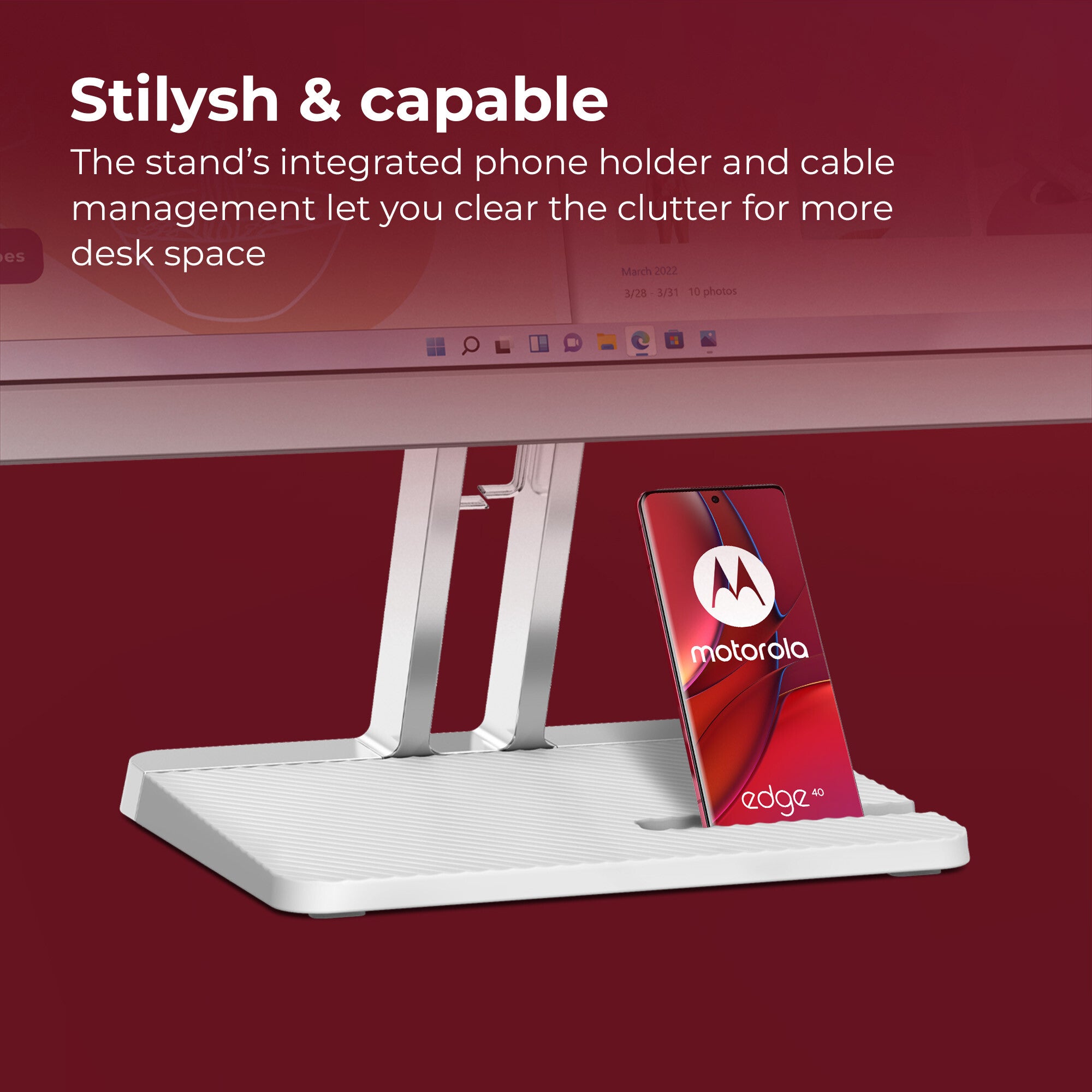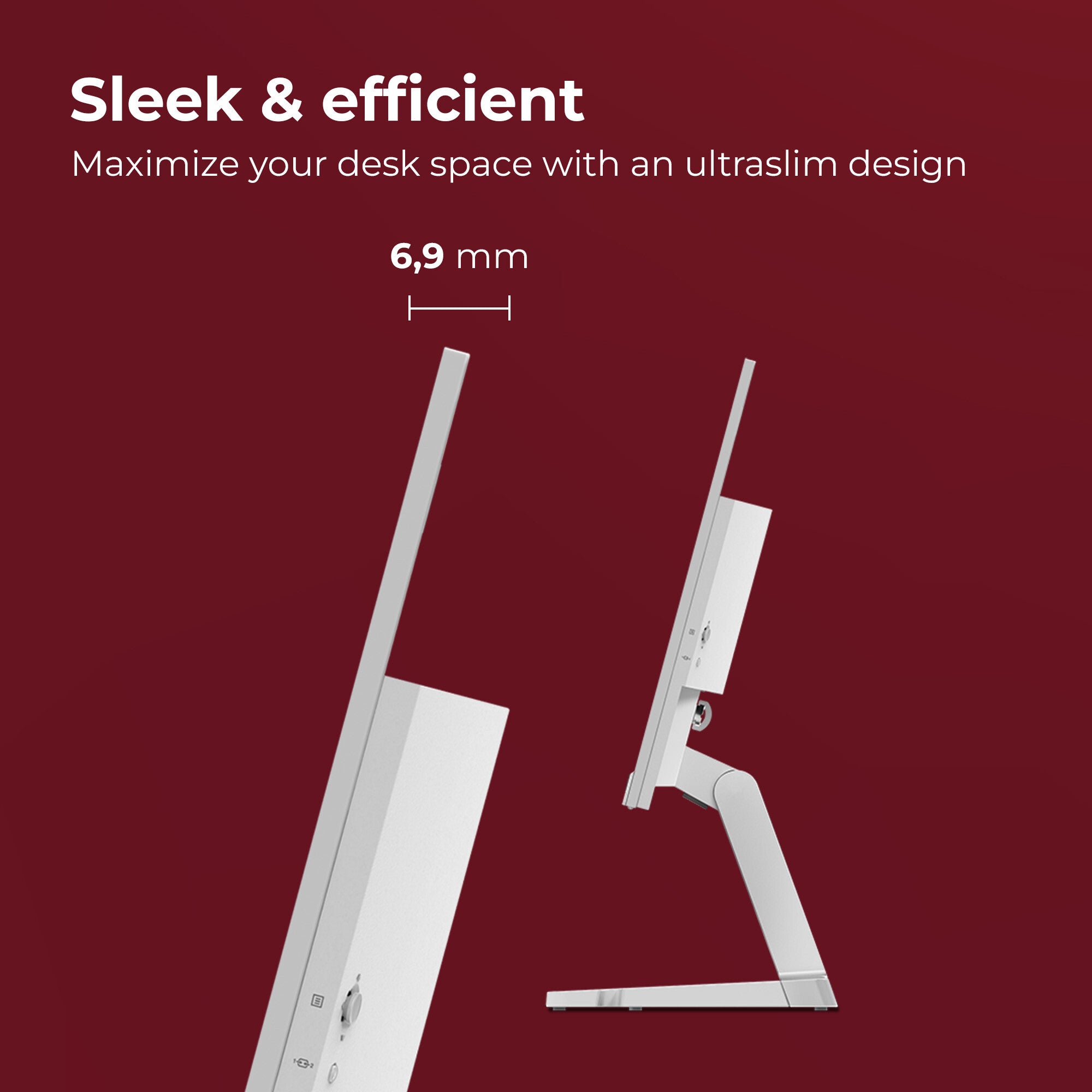 with the monitor’s 6.9 mm slim head design and cloud grey color. The stylish stand comes with a wave base pattern