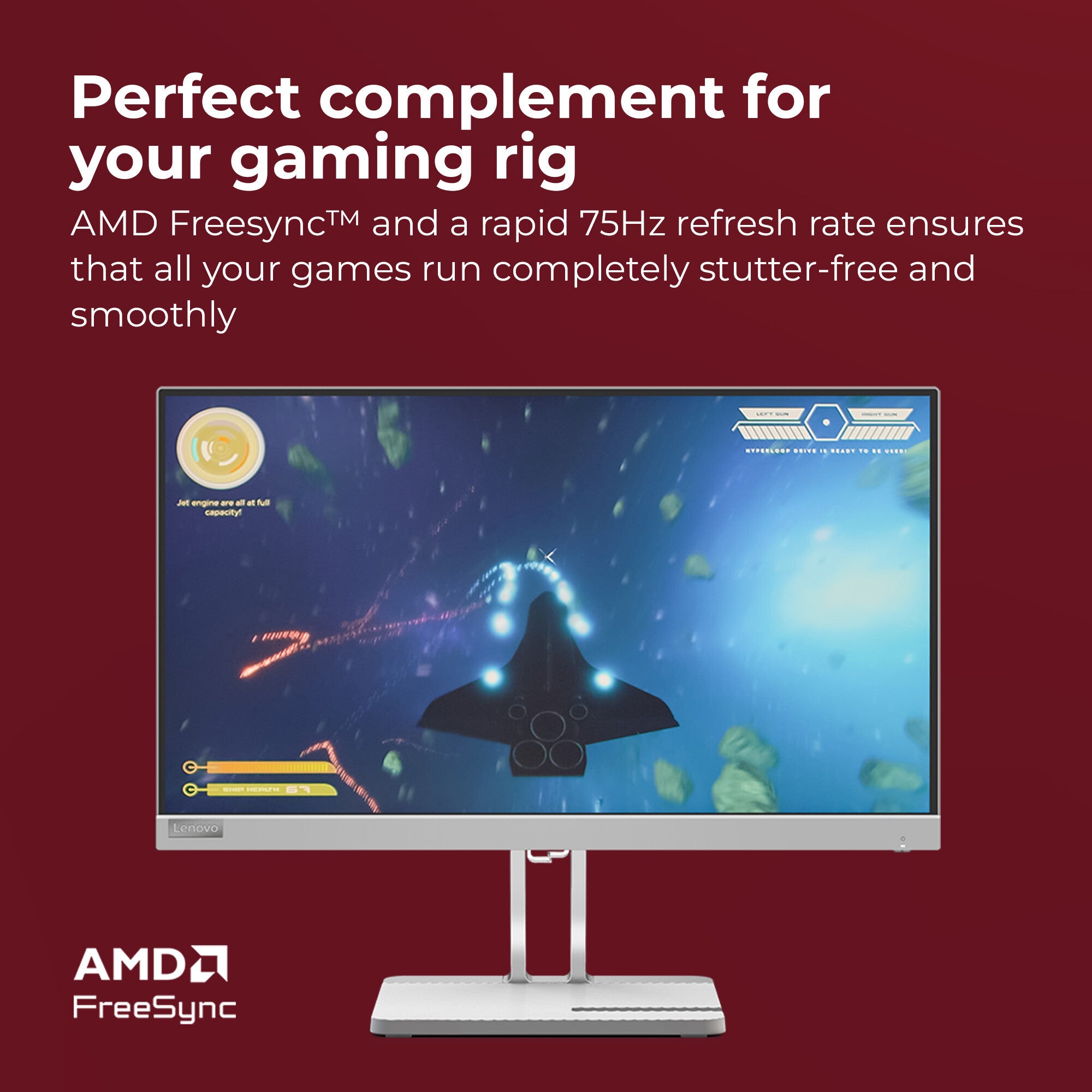 a breeze. Support for AMD Freesync and a rapid 75Hz refresh rate ensures that all your games run completely stutter-free and smoothly. Connecting your work or personal computers to the Lenovo L22e-40 is easy using its 1 x HDMI 1.4 and 1 x VGA input ports. Whether it's meetings or movies, enjoy rich clear audio on your preferred speakers or earphones using the monitor’s audio out port. Natural Low Blue Light technology eliminates harmful blue light