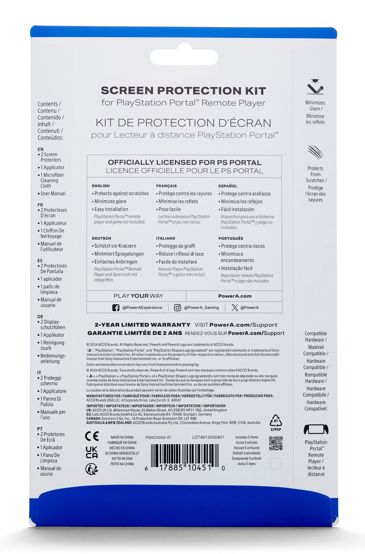 Keep the screen on the PlayStation Portal™ Remote Player protected with the officially licensed PowerA Screen Protection Kit. Includes 2 screen protectors, 1 microfiber cleaning cloth, and applicator.