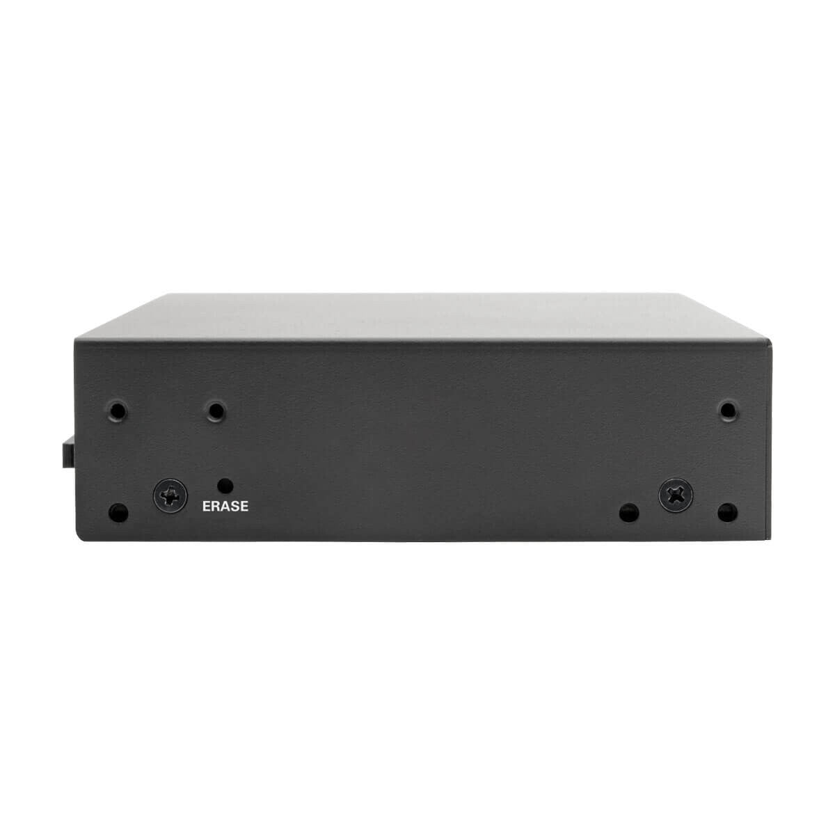 The heavy-duty steel housing comes with mounting brackets for easy installation in an EIA-standard 19-inch rack. Its fanless form factor also allows desktop deployment on four included rubber feet that help prevent the unit from sliding.