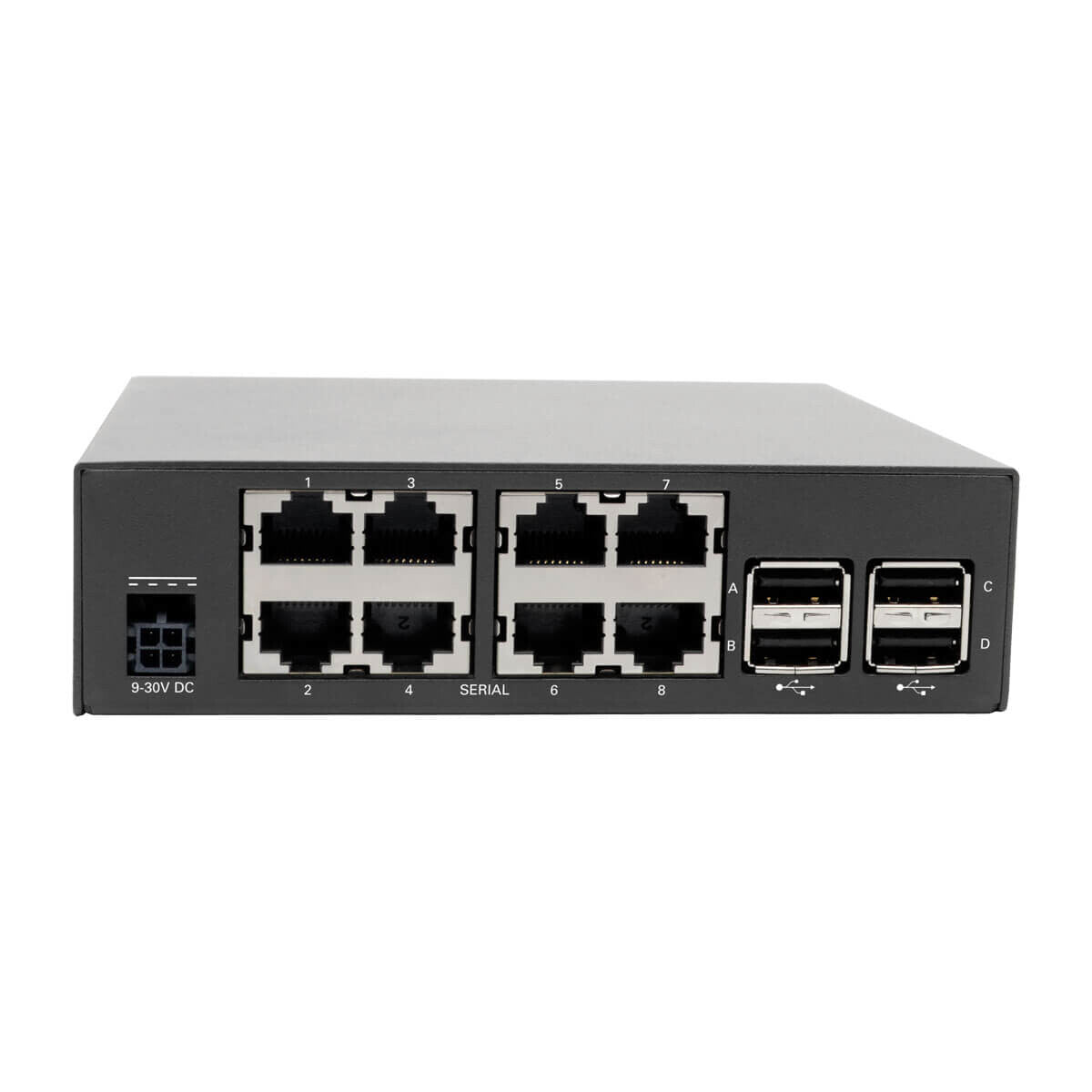 The B093-008-2E4U-M 8-port console server provides secure in-band (primary network) and out-of-band (alternate channel) remote access to serial- and network-connected routers, network switches, firewalls, PBX systems, UPS systems, PDUs and other devices. It offers reliable network connectivity with dual Gigabit primary and failover Ethernet ports for redundancy. You can use it in a wide variety of applications, including wiring closets, branch offices, point-of-sale and other remote sites where quick resolution of network issues is imperative.