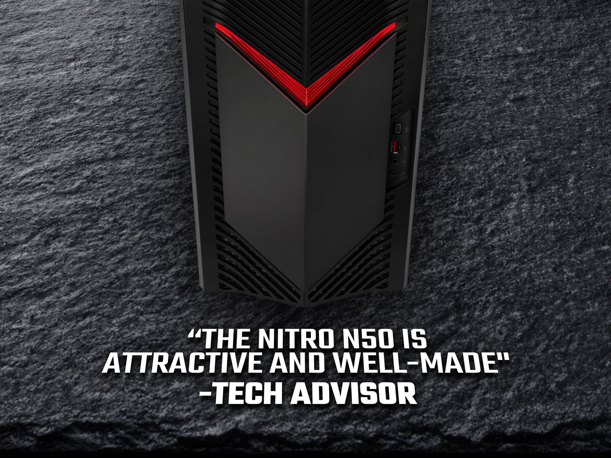 The latest 2023 Nitro 50 includes dynamic contours, burning red LEDs, and air-venting bezels. The expertly crafted 18-liter chassis also fits neatly on your desk or floor.