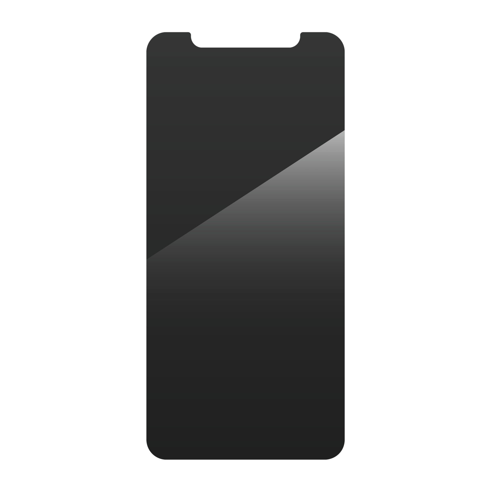 Ion exchange technology increases surface compression for increased strength and scratch-resistance. Smooth aluminosilicate glass is treated with a two-way filter that provides full-screen privacy when viewed from the side.