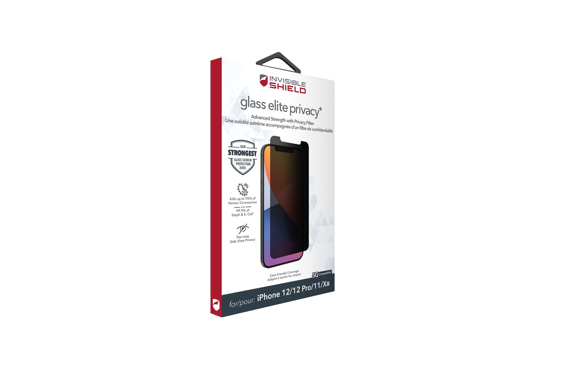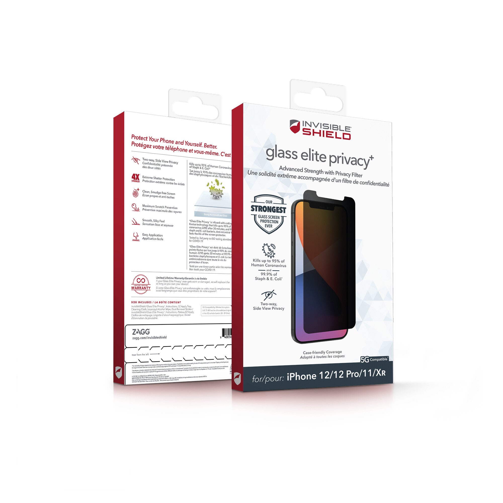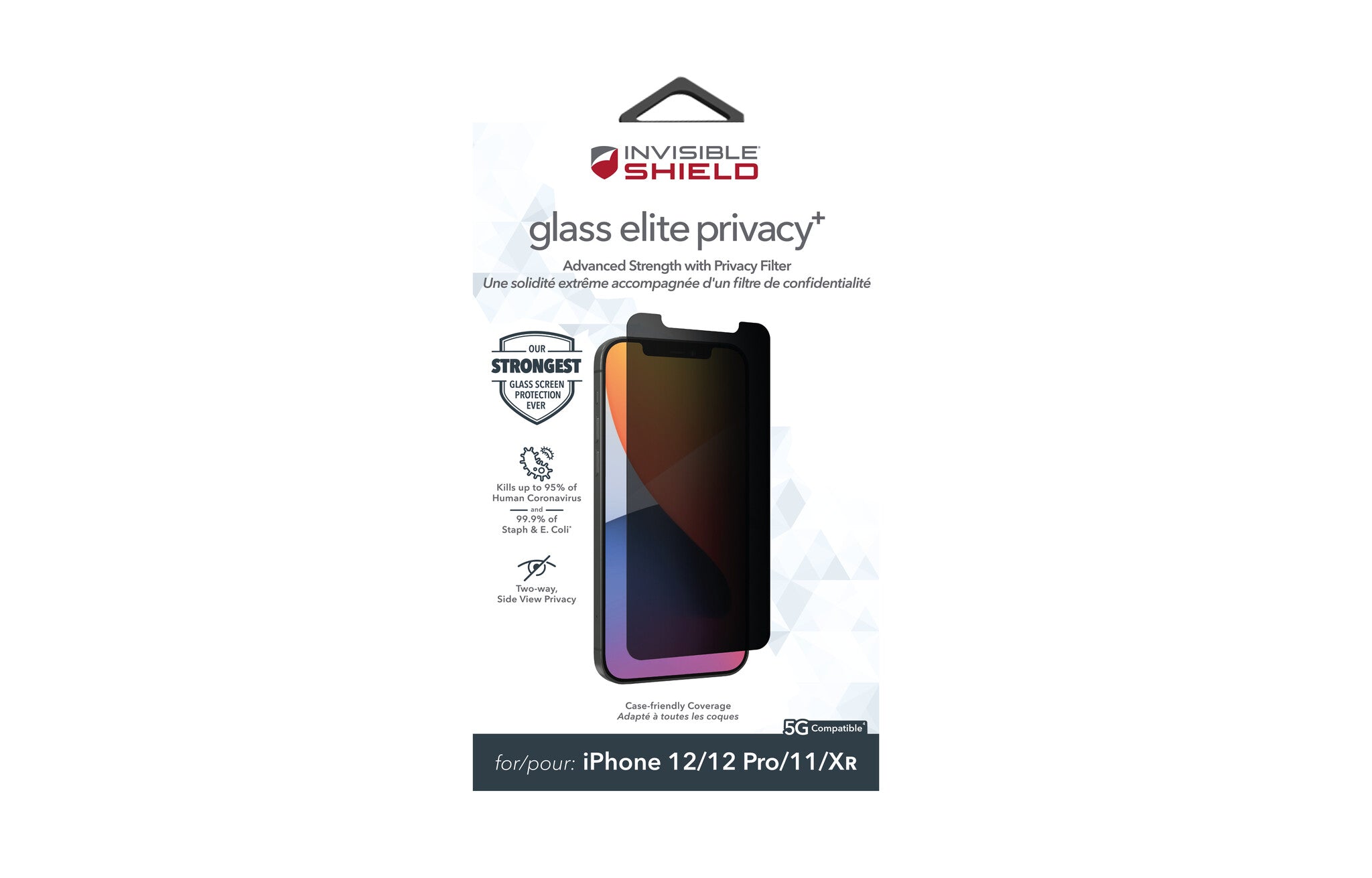 InvisibleShield Glass Elite Pivacy+ contains anti-microbial properties that protect the screen protector by inhibiting the growth of odor-causing bacteria and guarding against degradation from microorganisms.