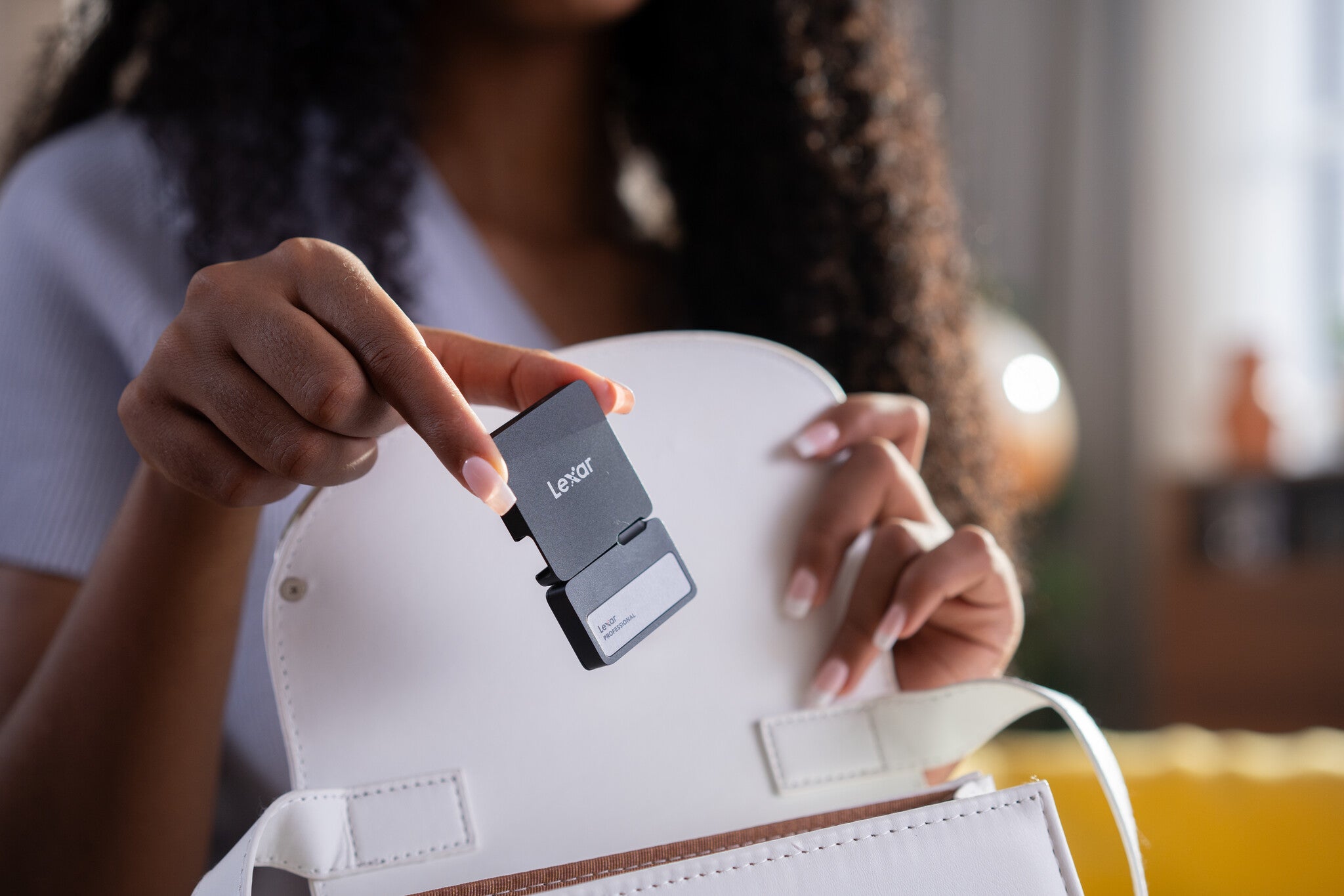 The ultimate in ultra-portable SSDs, this innovative, compact drive plugs right into your phone, and lets you shoot seamless video straight to the drive from your iPhone 15 Pro/ Max or above. Weighing a mere 13 grams but packing a mighty capacity of up to 2TB, this revolutionary drive delivers USB 3.2 Gen 2 performance of 1050MB/s read, 1000MB/s write1 to capture seamless Apple ProRes 4K fps video and power through post-production processes right on the drive.